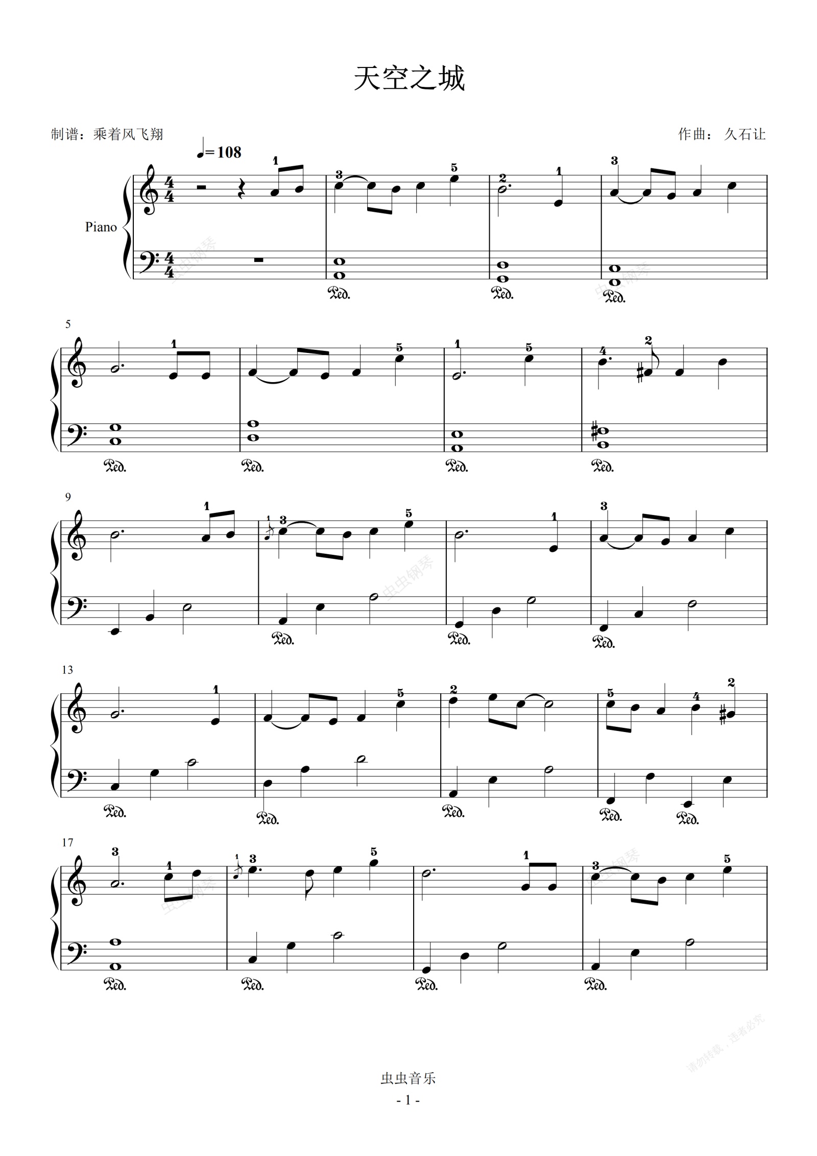 其主题曲《伴随着你》(通称:天空之城)由音乐家久石让作曲,因以其让人落泪的优美曲调和动人心弦的美妙音律而闻名全球,被改编成多种版本,成为流传的影视名曲。