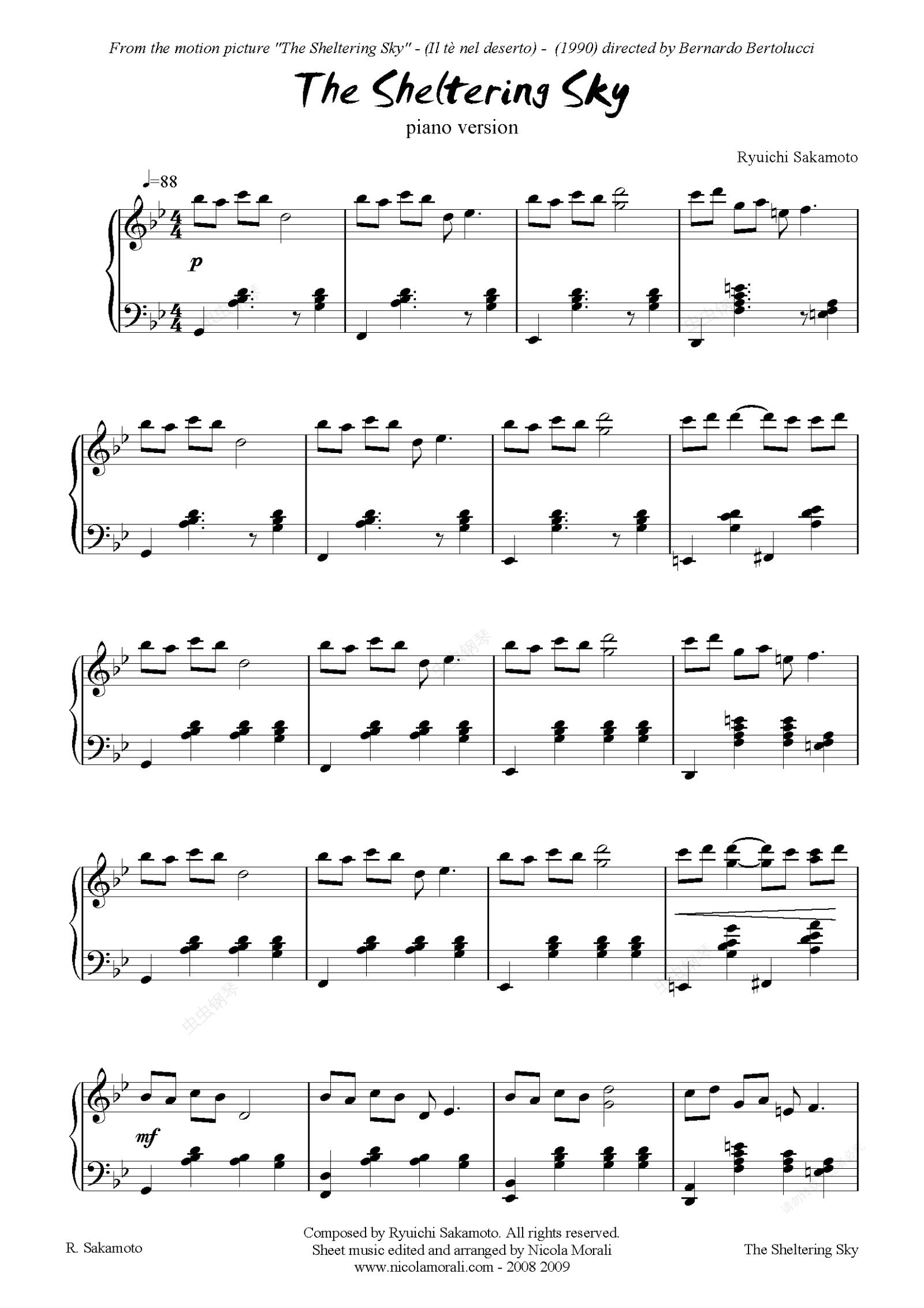 钢琴谱:The sheltering sky-Theme-Piano ver.