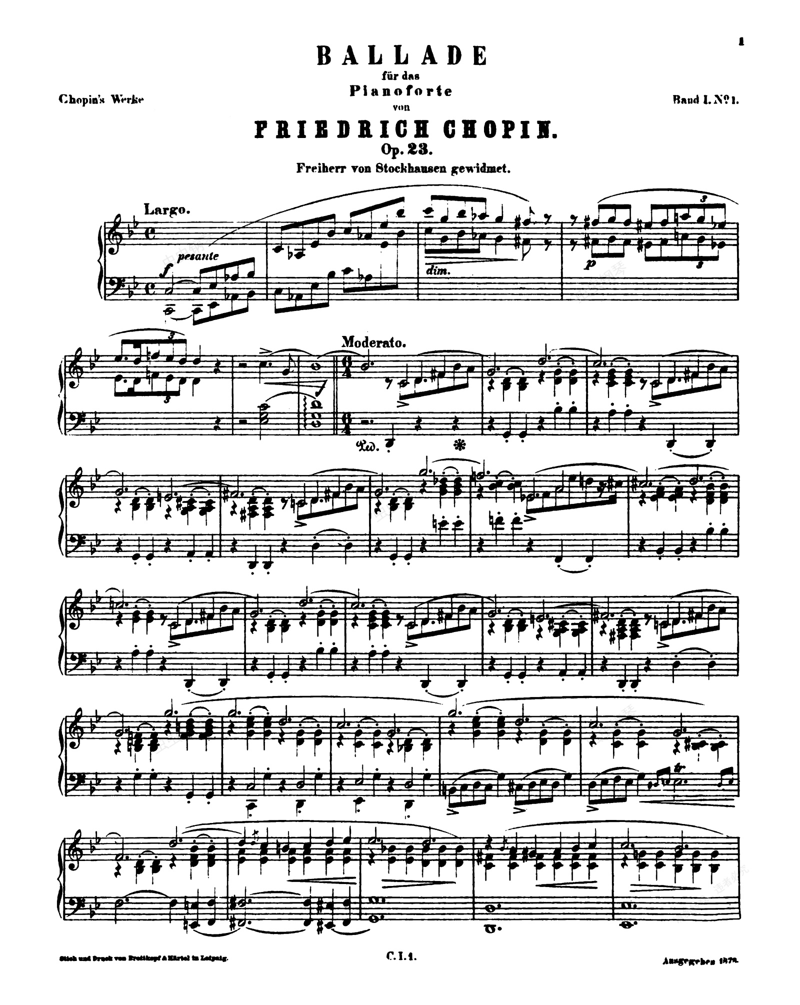 钢琴谱:肖邦-Ballade g小调第一叙事曲, Op.23