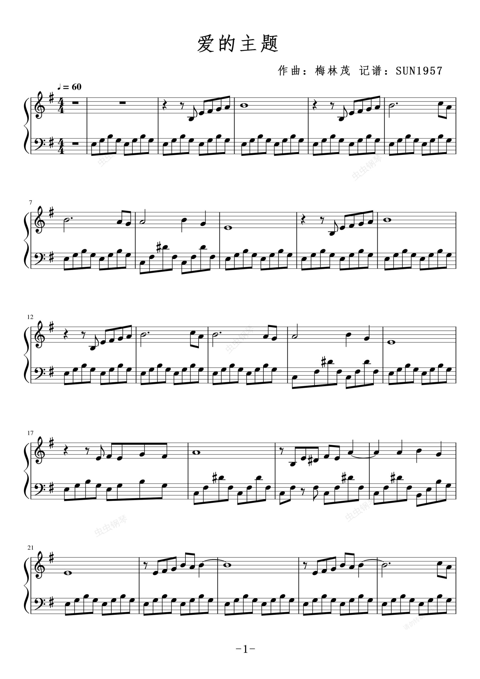 钢琴谱:爱的主题