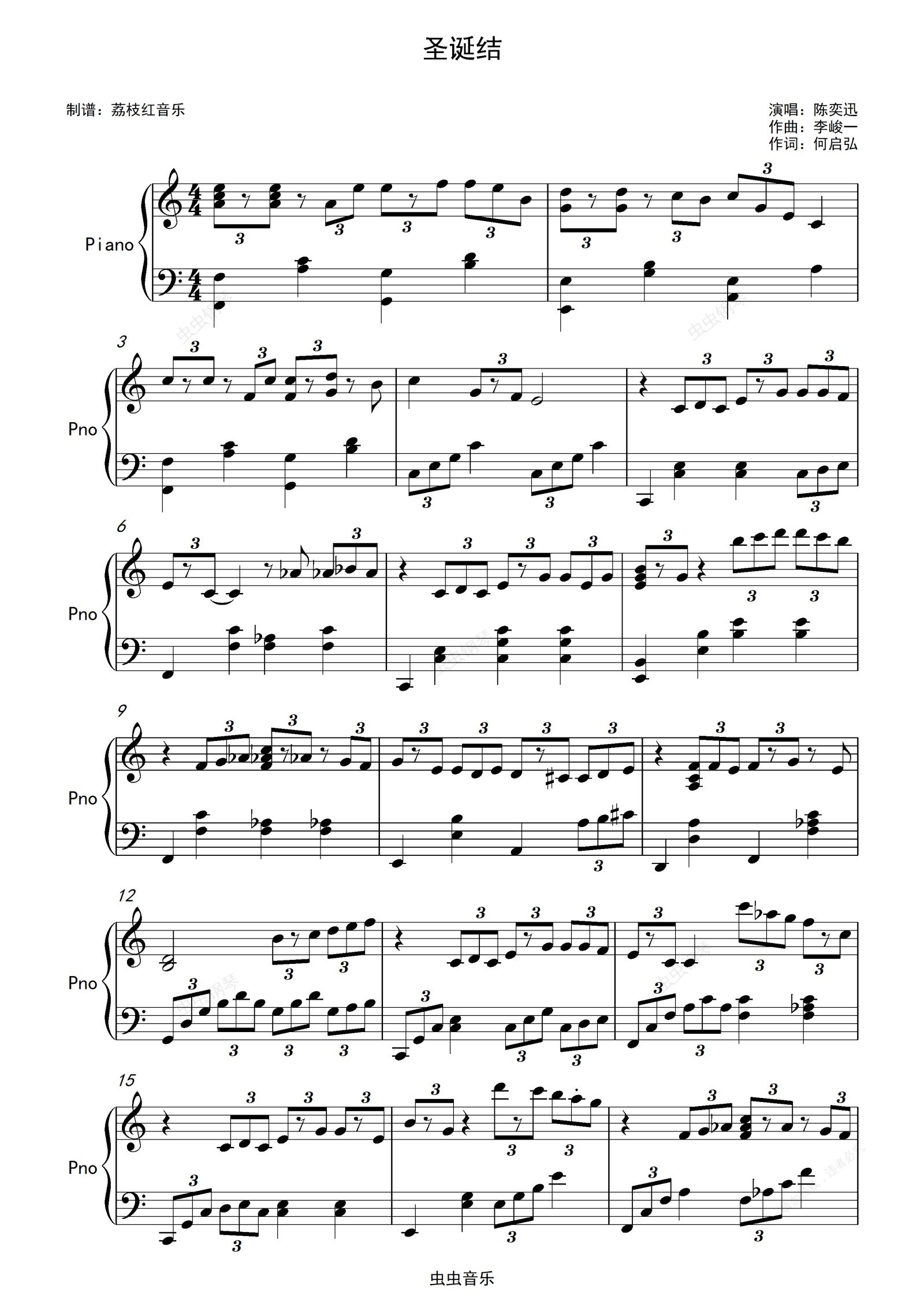 钢琴谱:完整版 C大调 圣诞结 陈奕迅