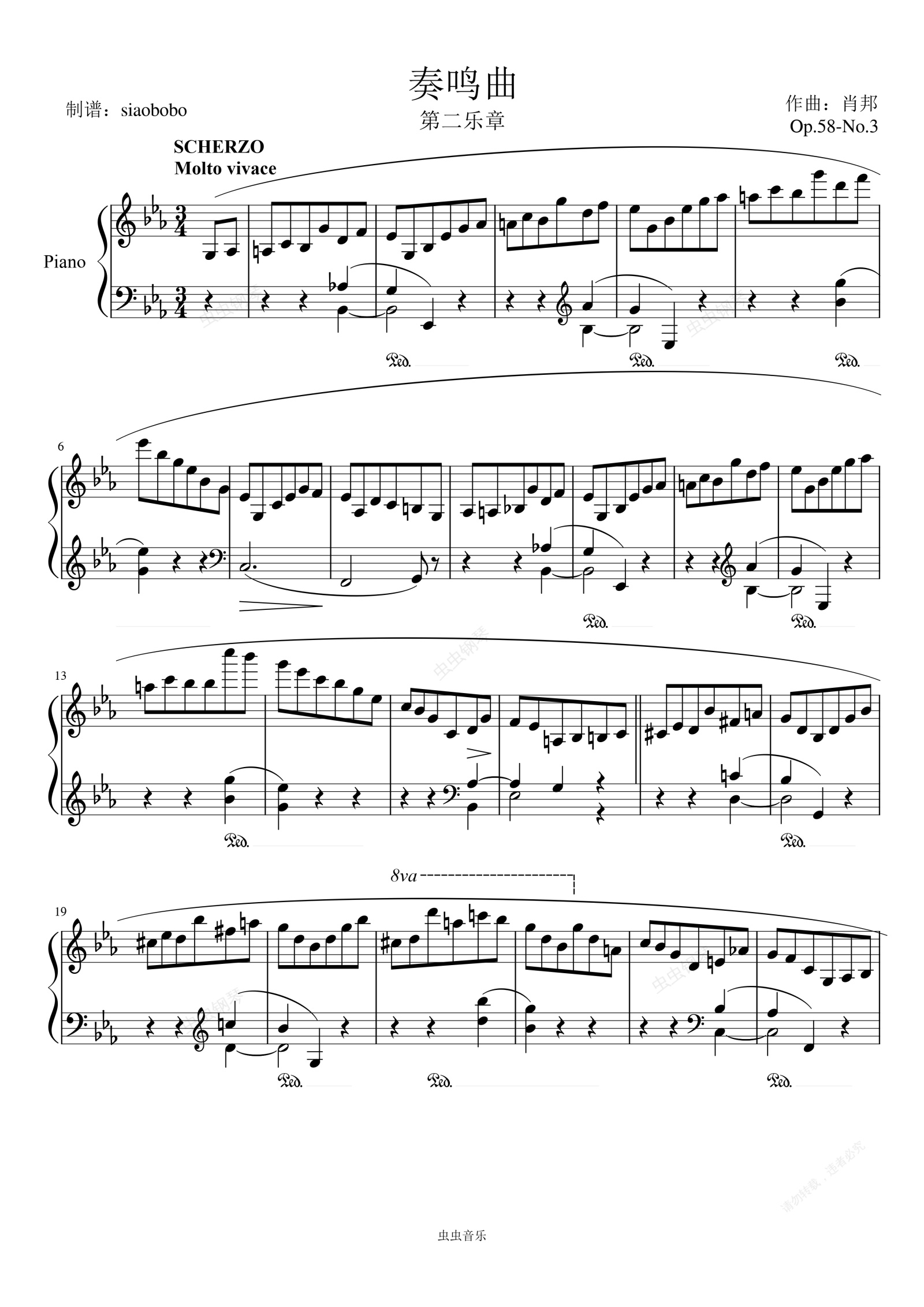 钢琴谱:肖邦第三钢琴奏鸣曲(第二乐章)——Op.58-No.3