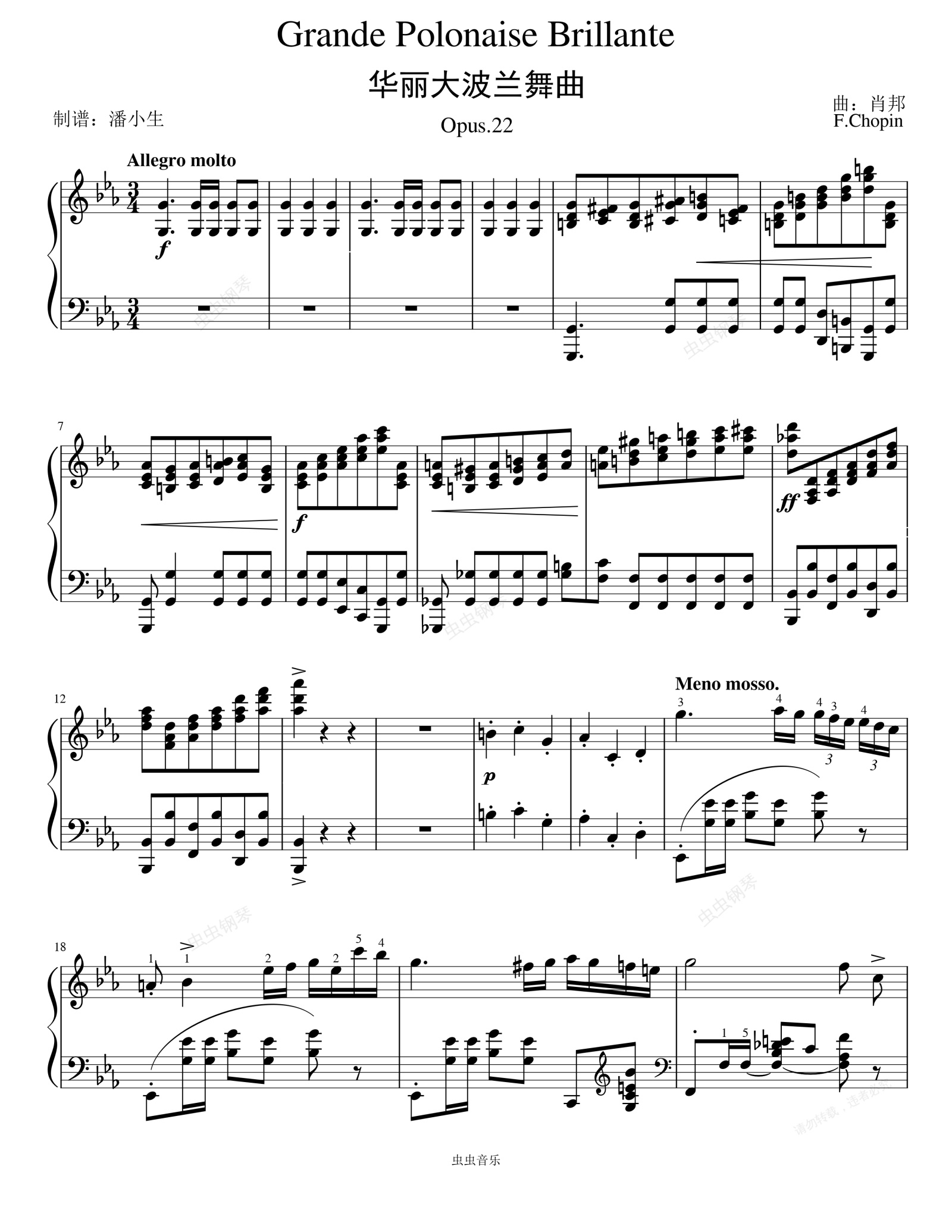 钢琴谱:肖邦 Op.22《华丽大波兰舞曲》带指法 Grande polonaise E大调