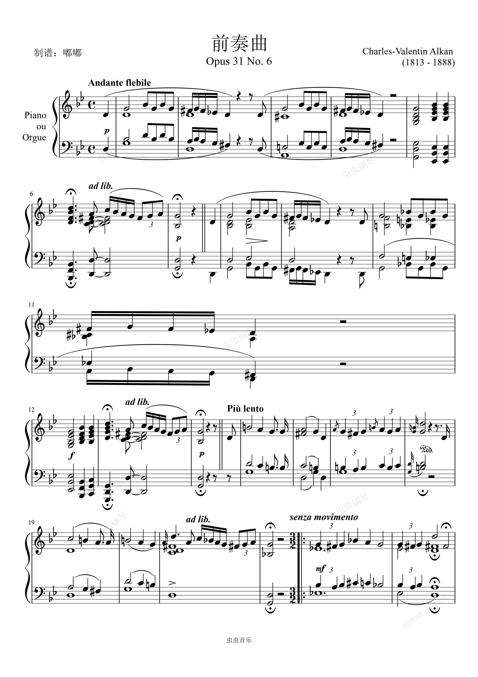 钢琴谱:前奏曲(阿尔坎)——Op.31-No.6