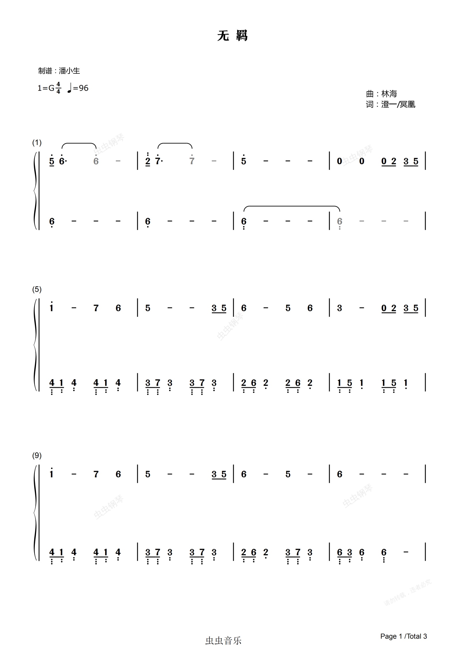 钢琴谱:[双手简谱] 无羁 《陈情令》片尾曲 简单版