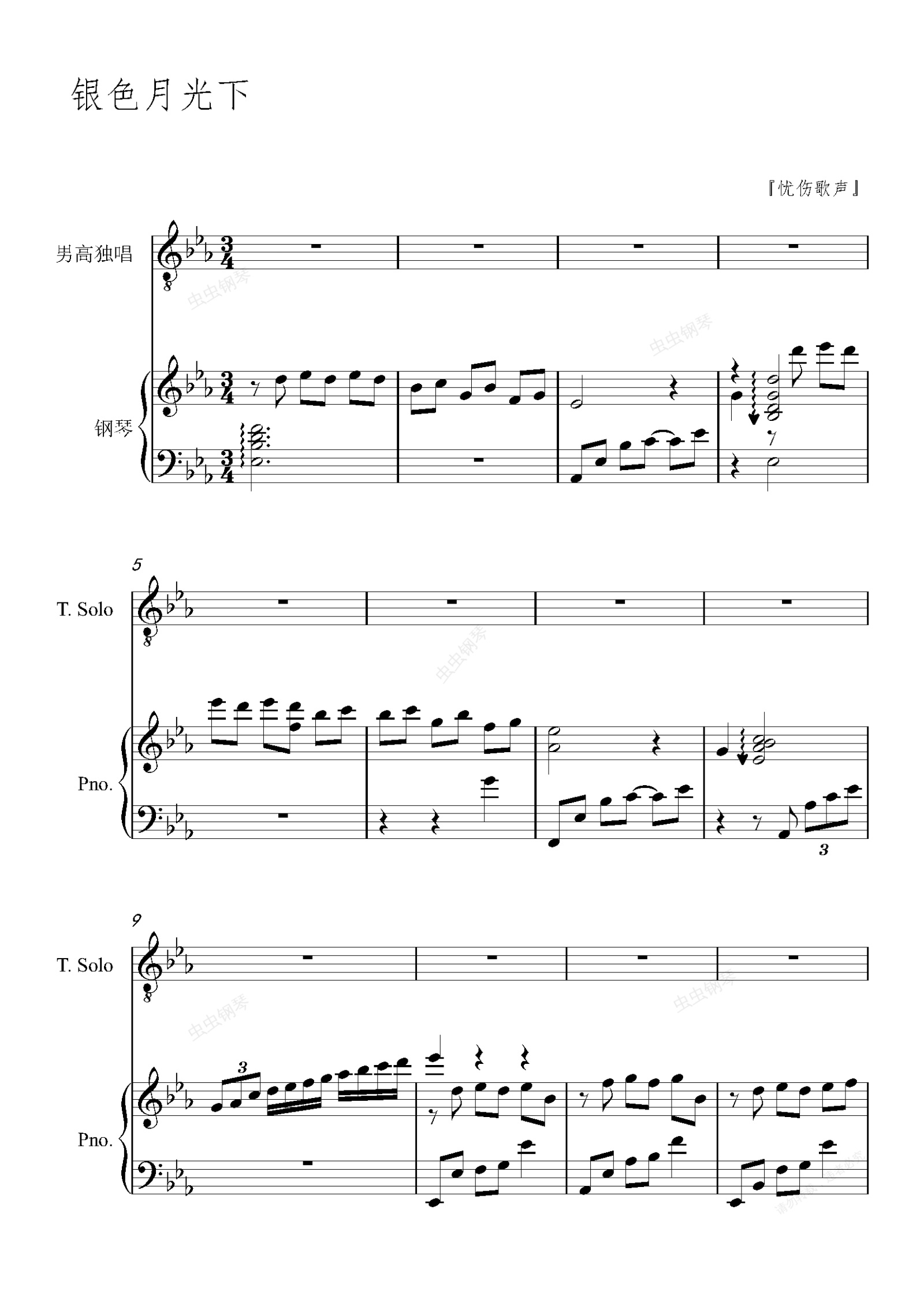 钢琴谱:在银色月光下(唯美伴奏版)——『忧伤歌声』