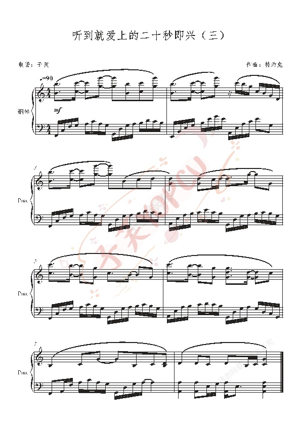 钢琴谱:听到就爱上的二十秒即兴(三)特污兔