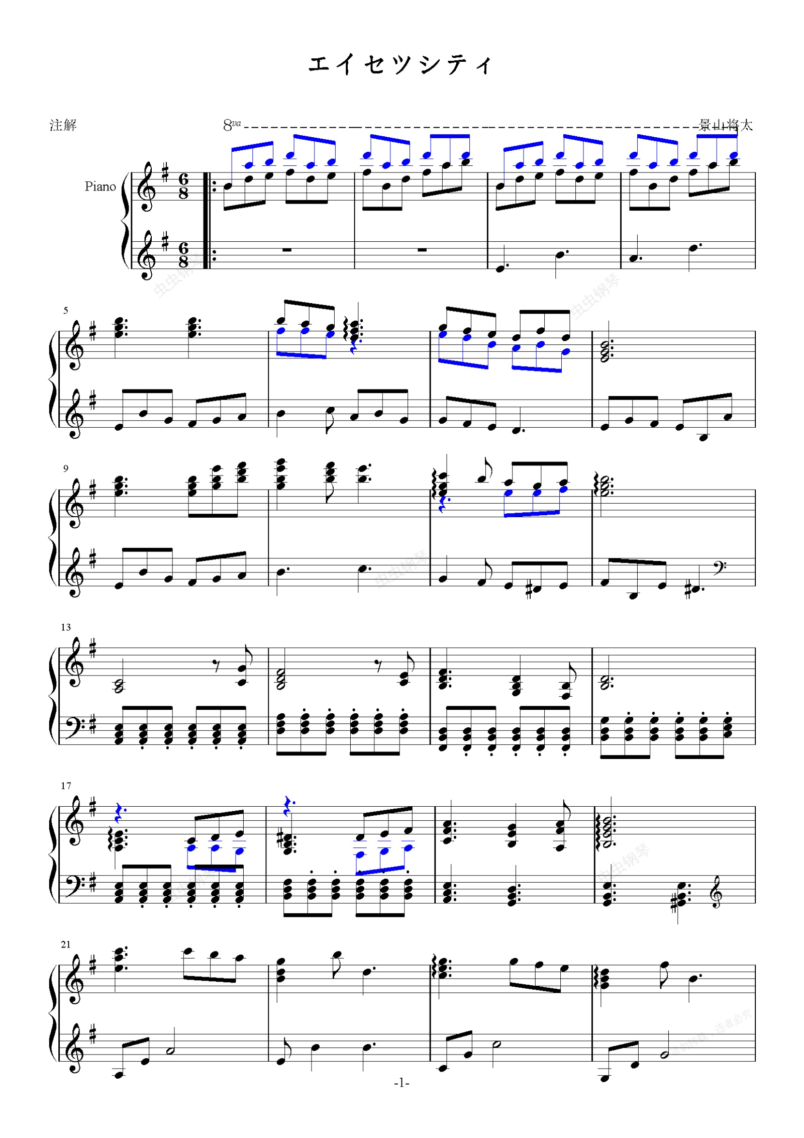 钢琴谱:エイセツシティ(口袋妖怪XY_映雪市)