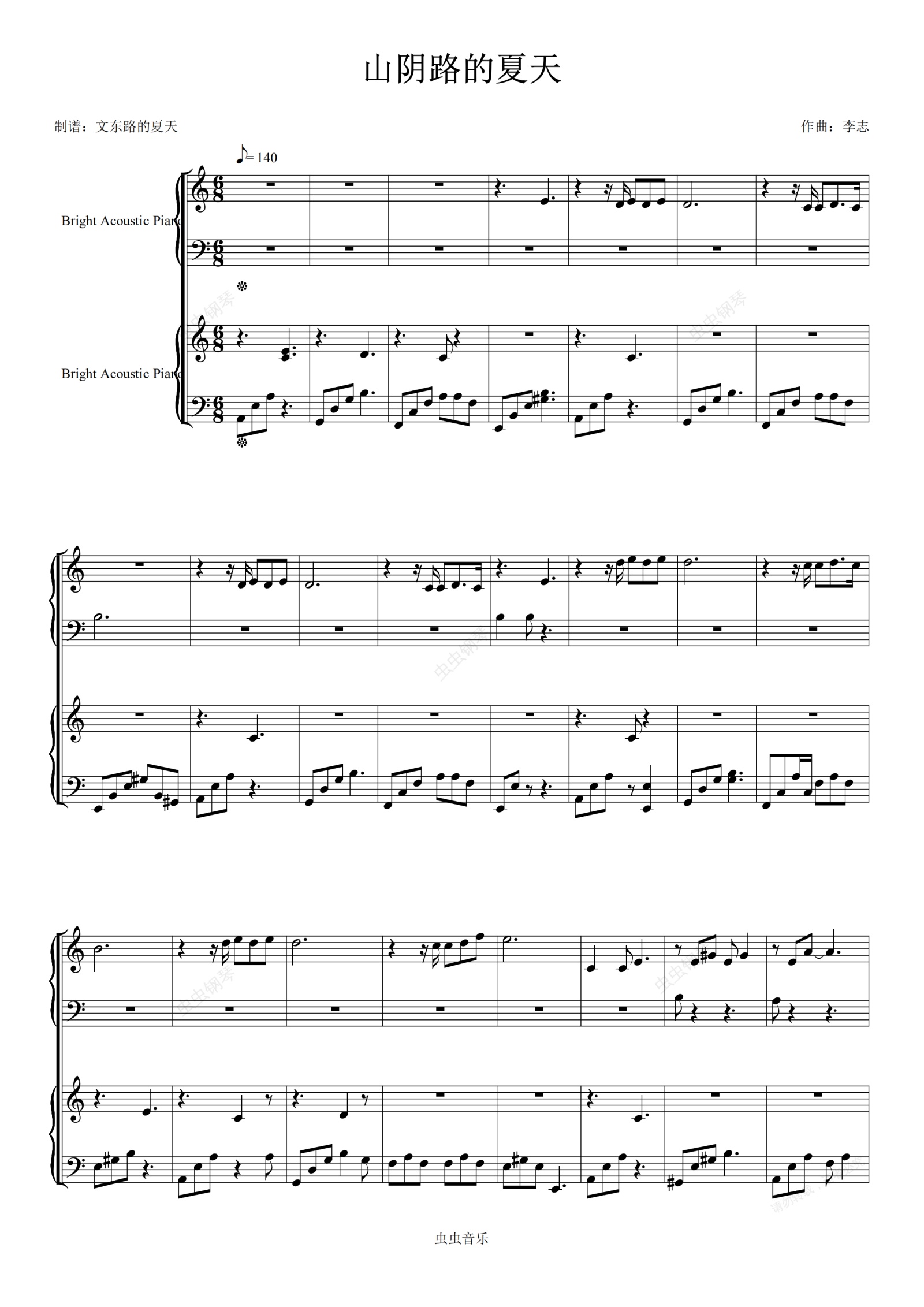 钢琴谱:李志-山阴路的夏天(2014 i/O现场版)