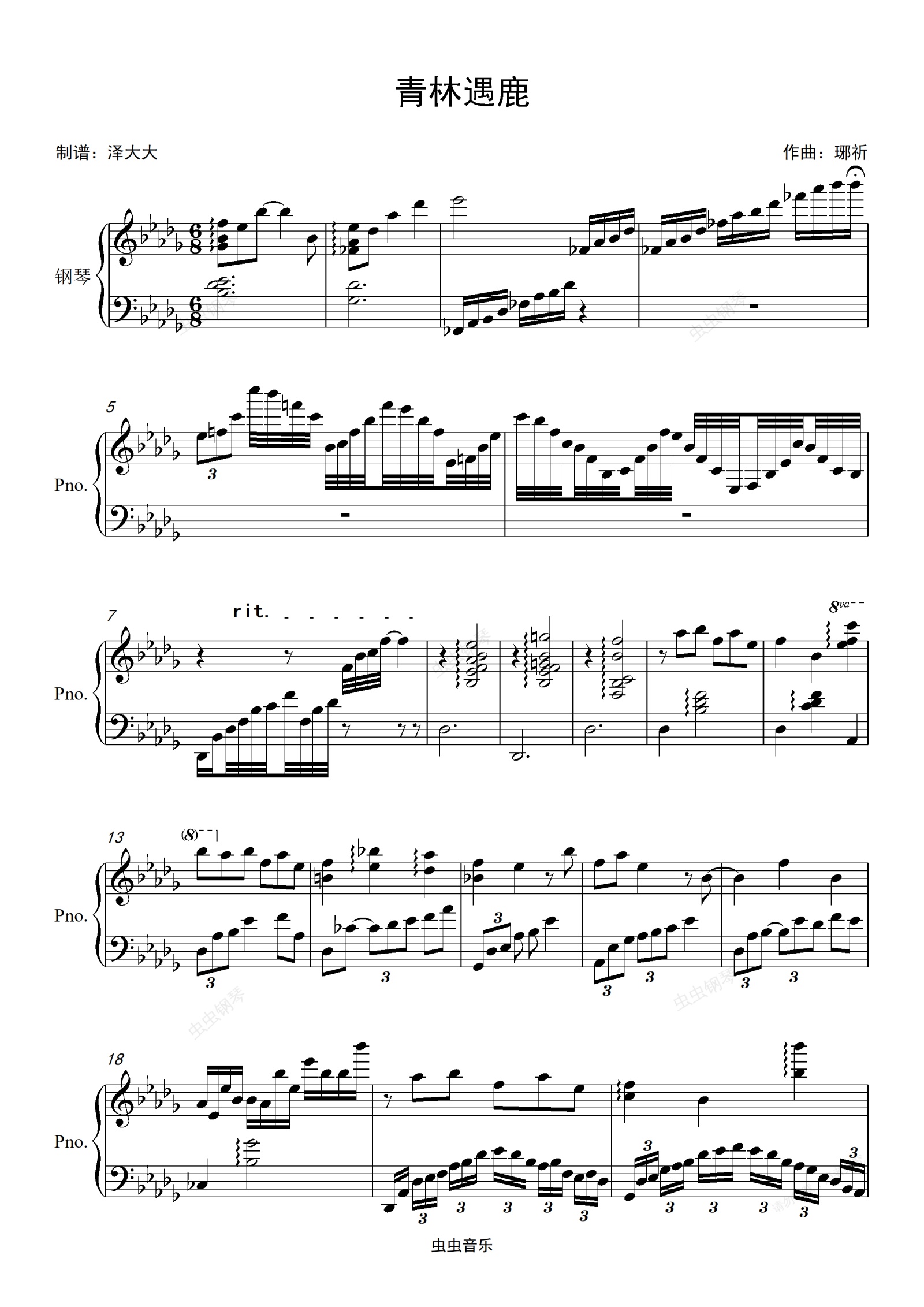 钢琴谱:青林遇鹿【钢琴独奏版】逆水寒