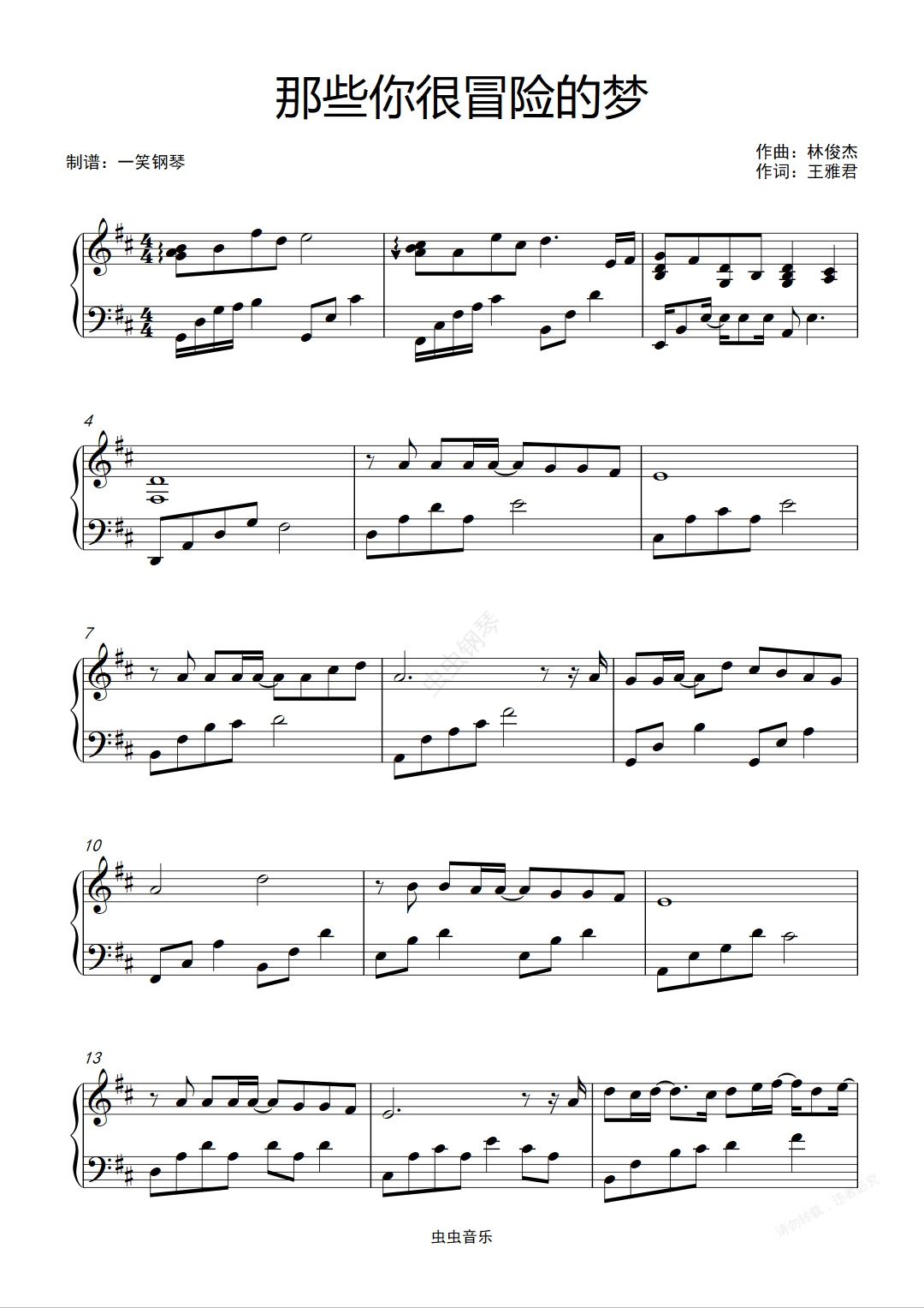 钢琴谱:那些你很冒险的梦-林俊杰 【超级好听版】