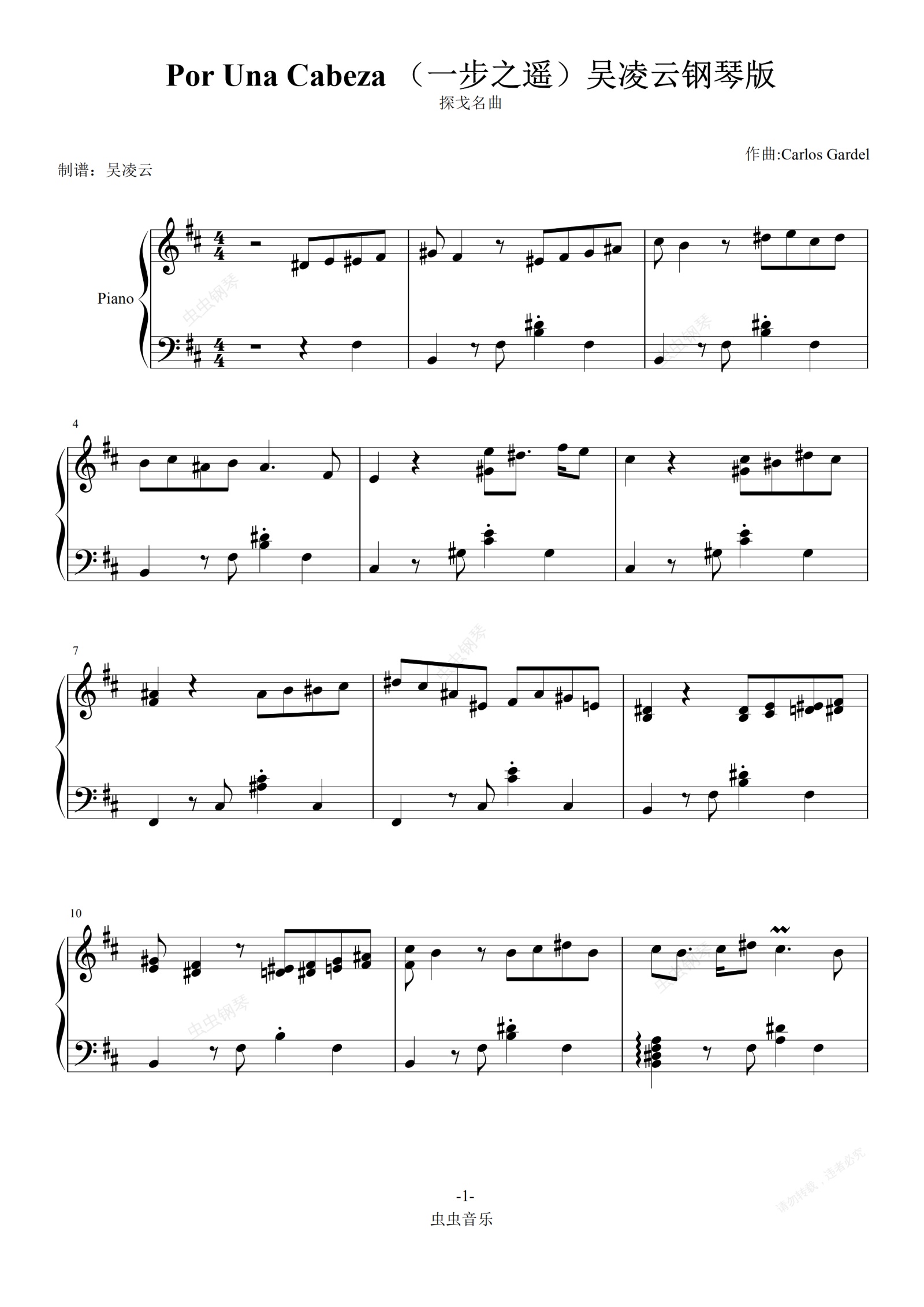 钢琴谱:Por Una Cabeza (一步之遥)吴凌云钢琴版