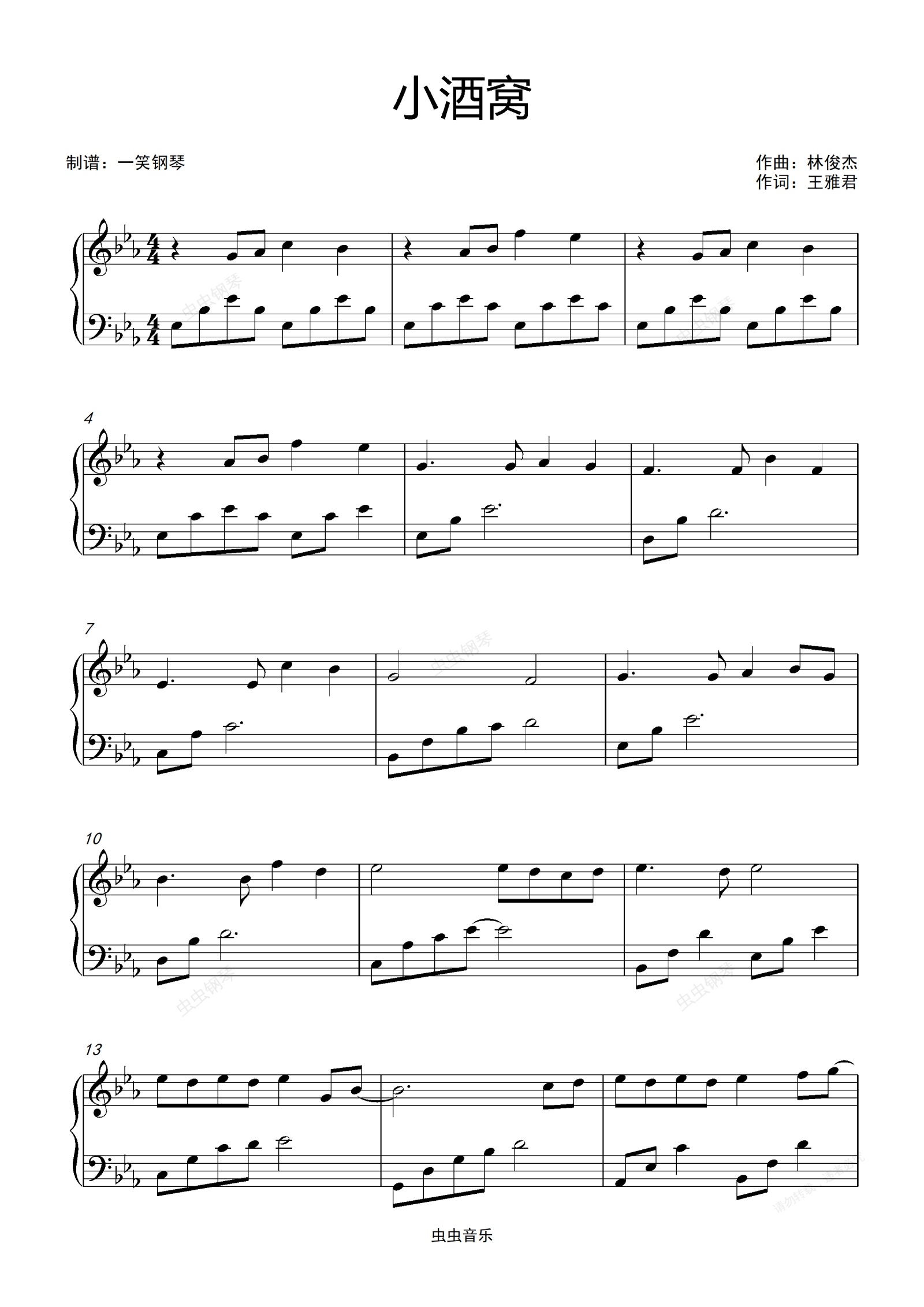 钢琴谱:小酒窝-林俊杰 【超级好听版】