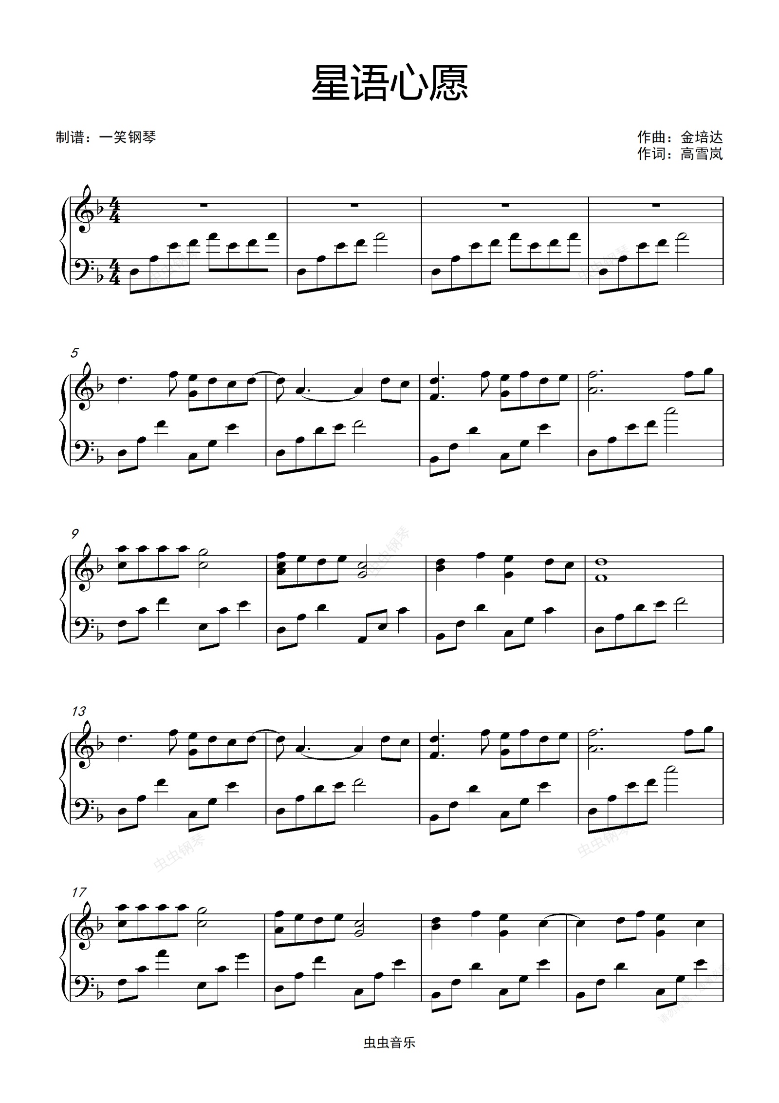 钢琴谱:星语星愿-张柏芝 【超级好听版】