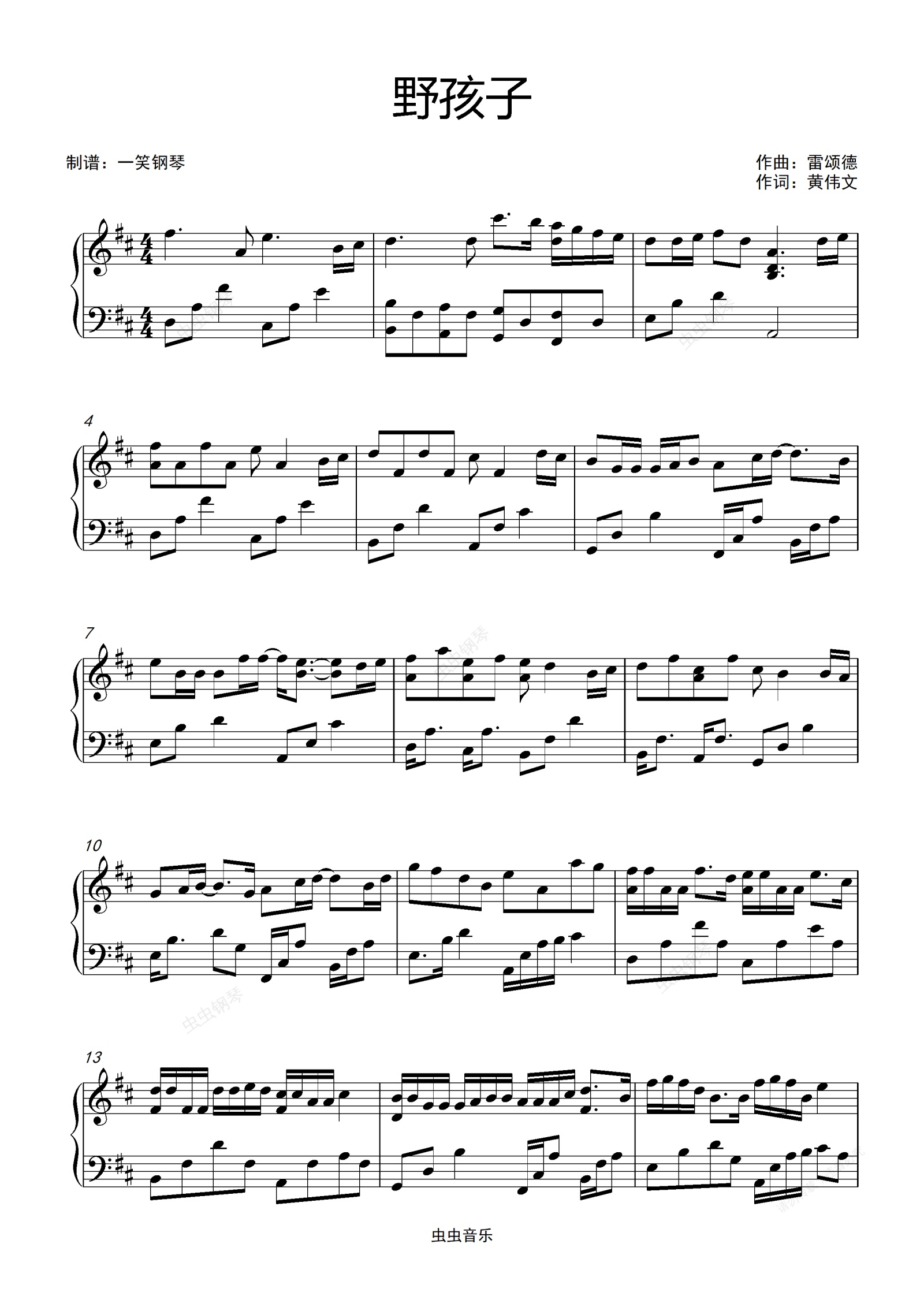 钢琴谱:野孩子-杨千嬅【超级好听版】