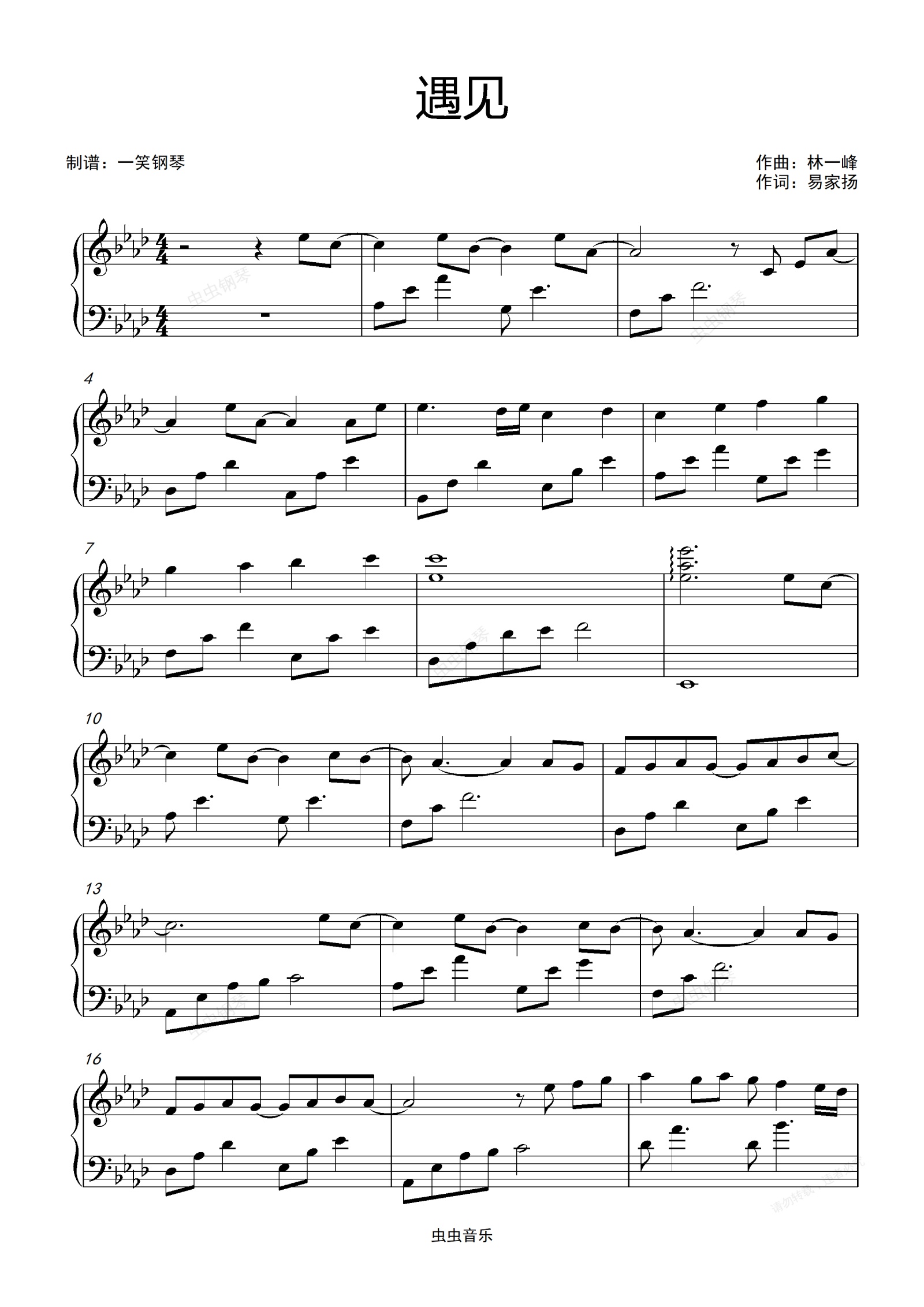 钢琴谱:遇见-孙燕姿 【超级好听版】