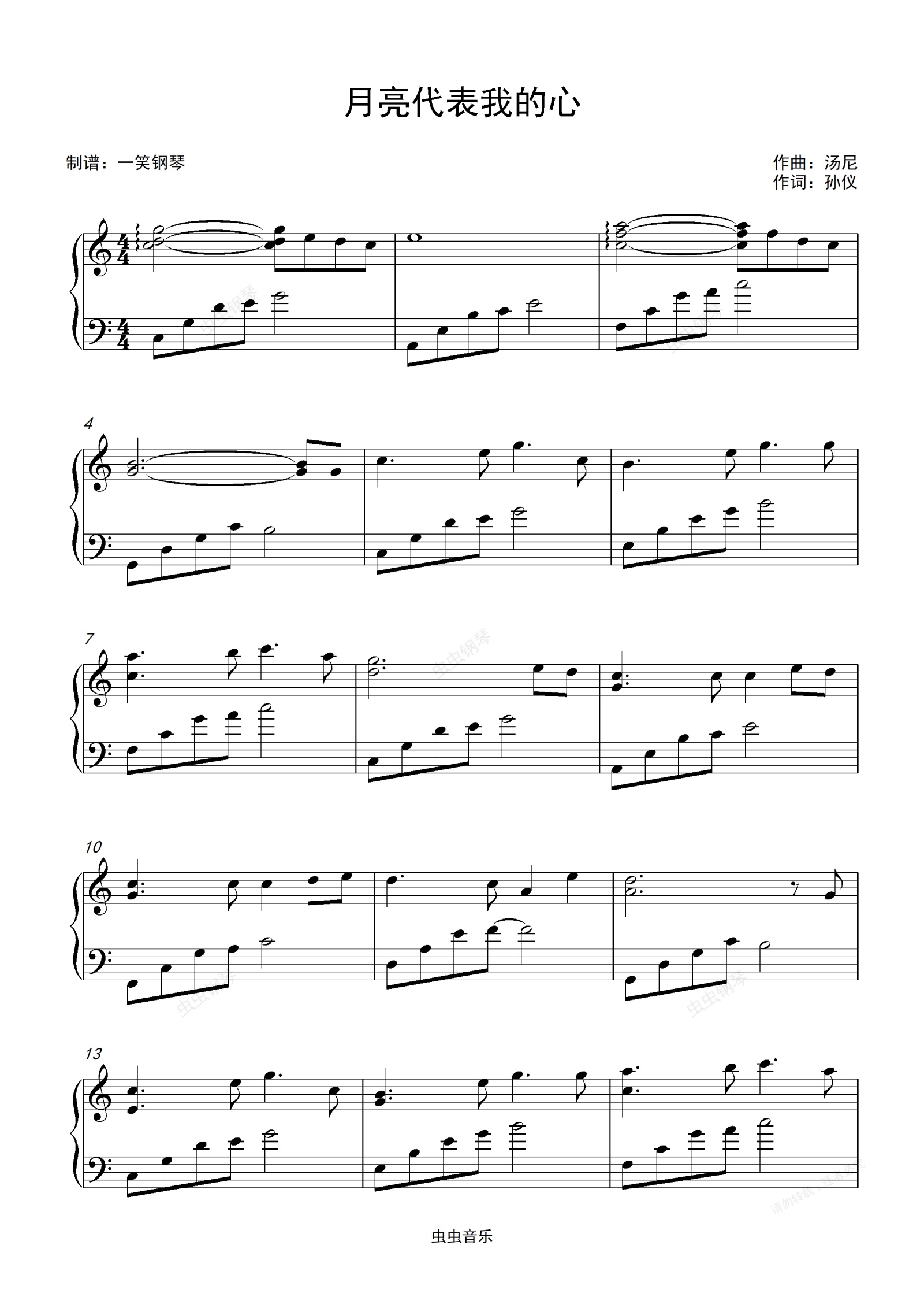 钢琴谱:月亮代表我的心-邓丽君 【超级好听版】