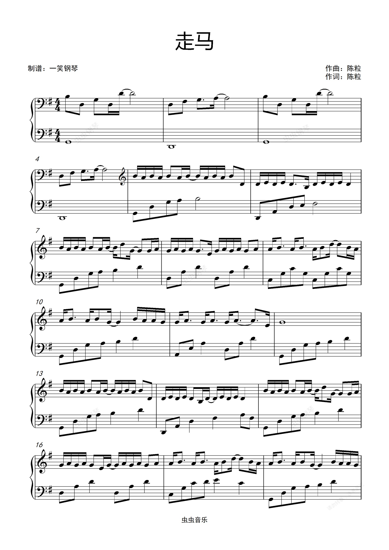 钢琴谱:走马-陈粒 【超级好听版】