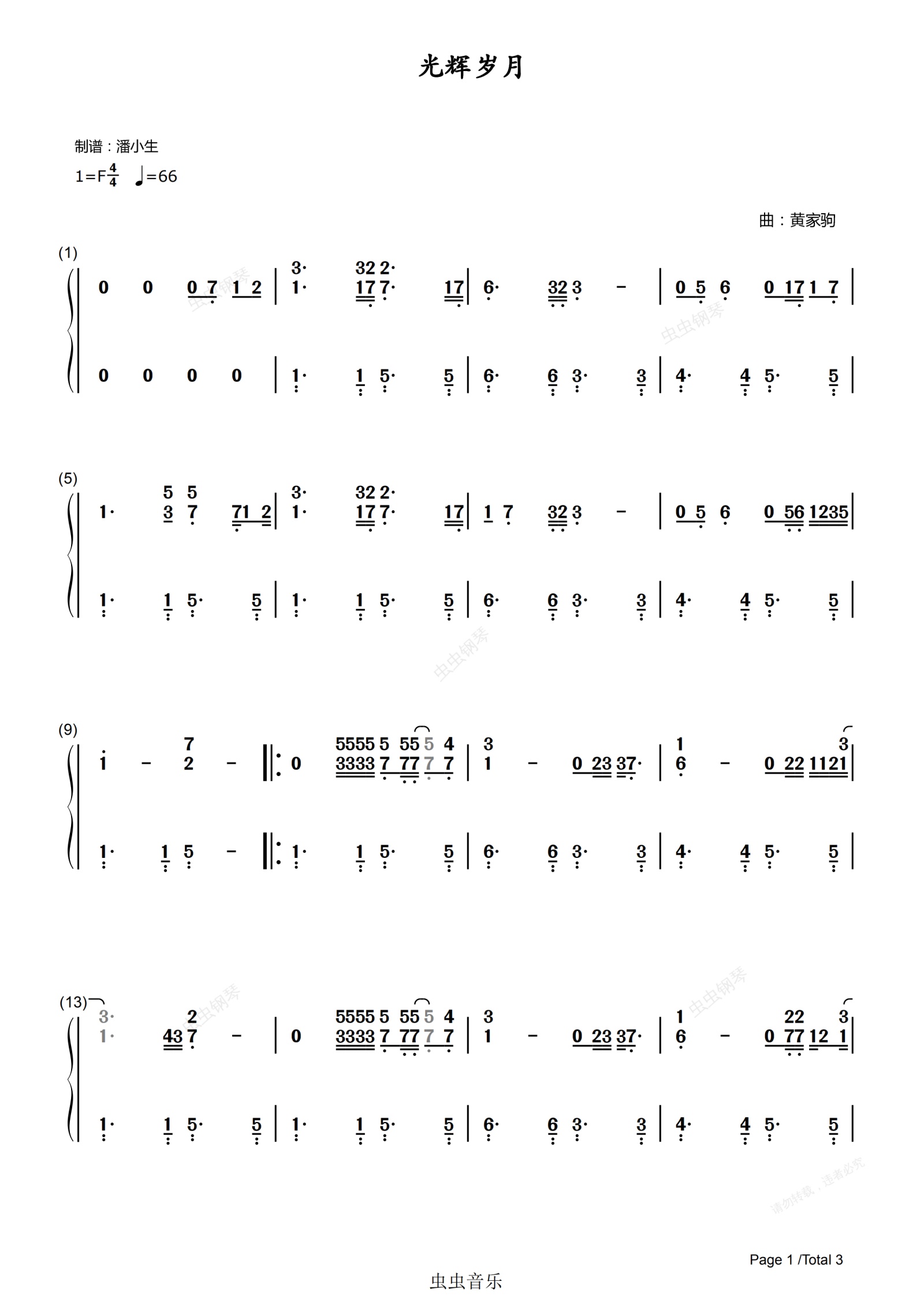 钢琴谱:[双手简谱] 光辉岁月 数字 独奏谱 beyond