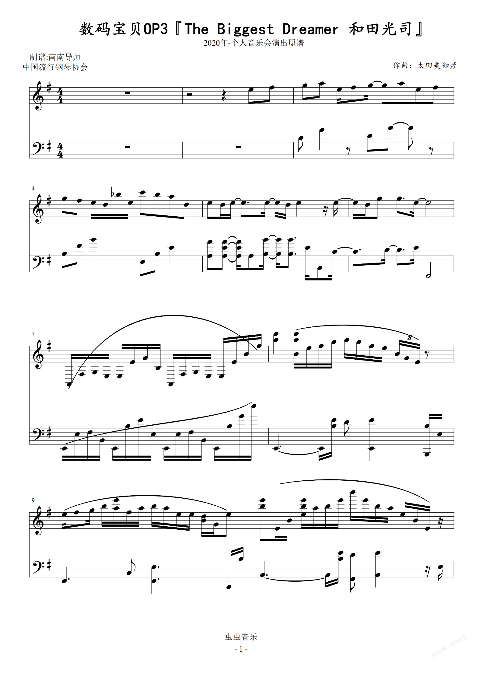 钢琴谱:The Biggest Dreamer【数码宝贝OP3】