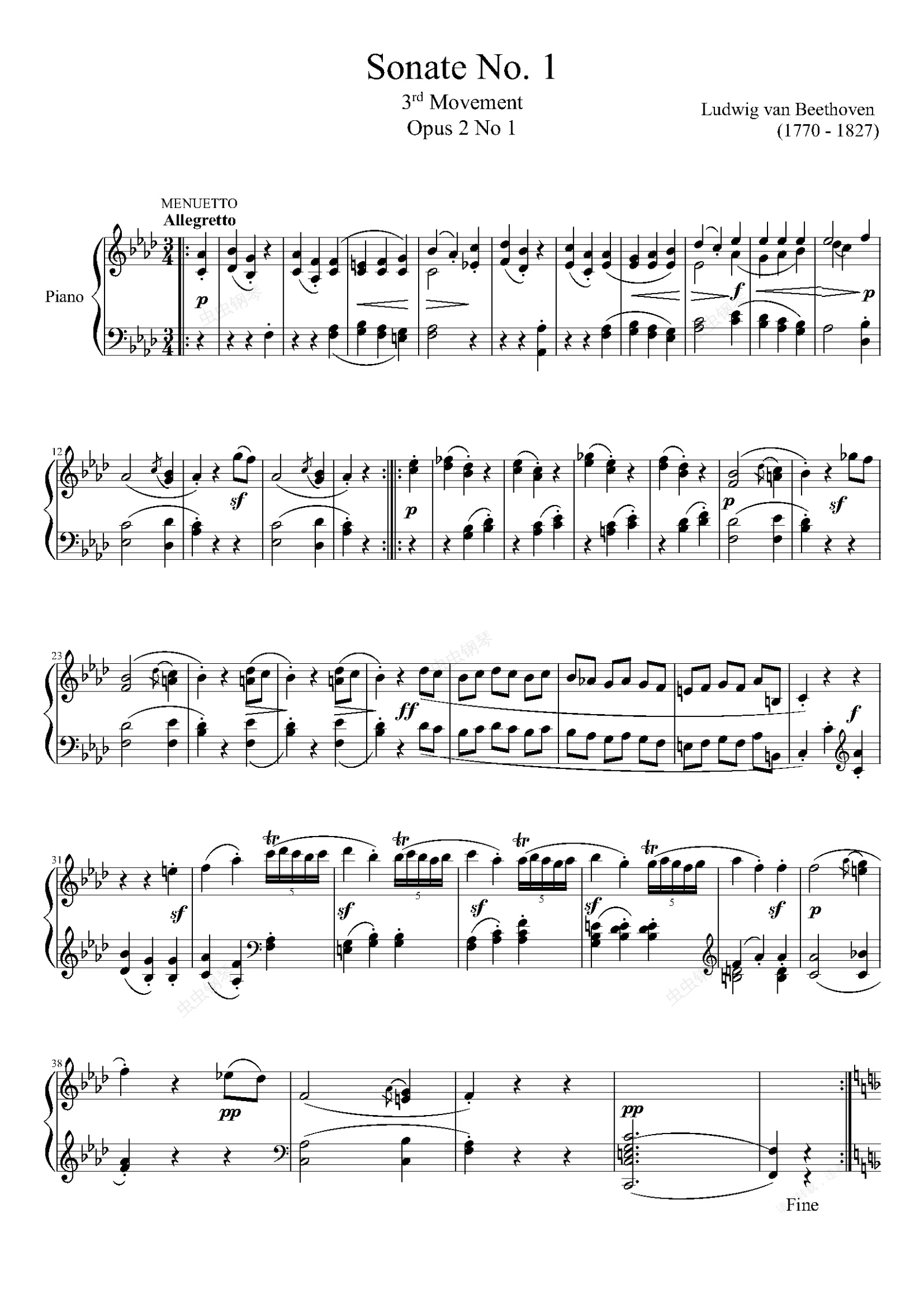 钢琴谱:贝多芬第一钢琴奏鸣曲(第三乐章)——Op.2-No.1