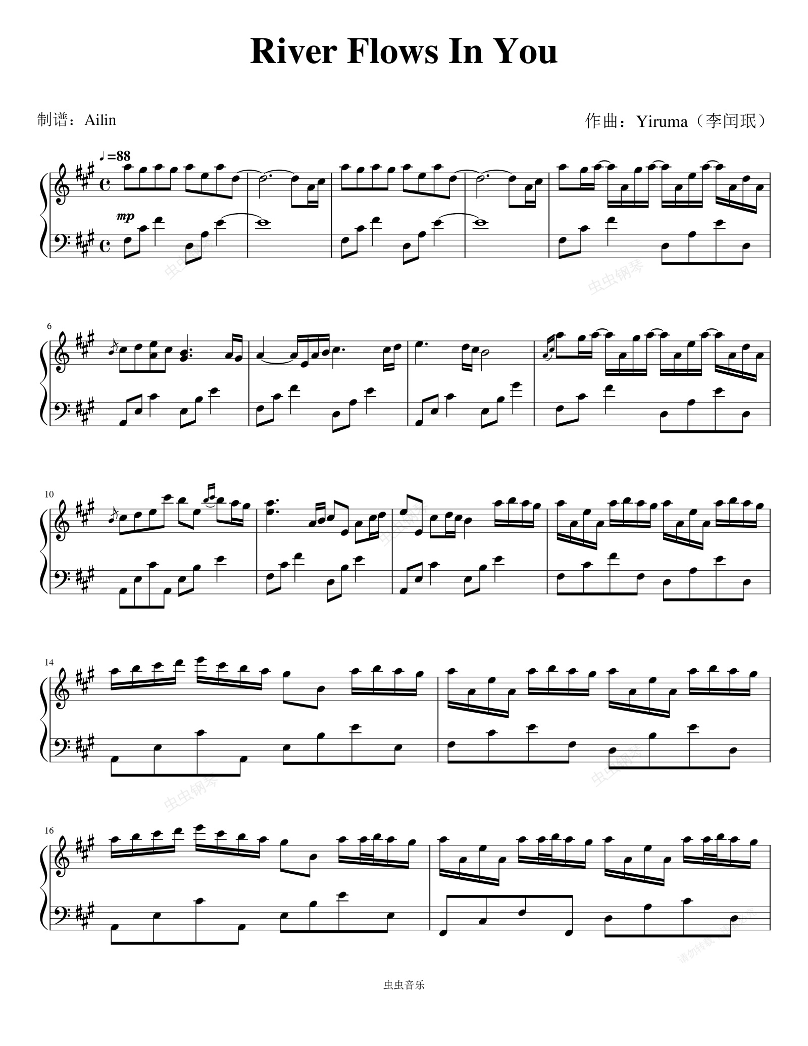 钢琴谱:River flows in you【原版】 Yiruma 李闰珉 你的心河 在你心中流淌的河流