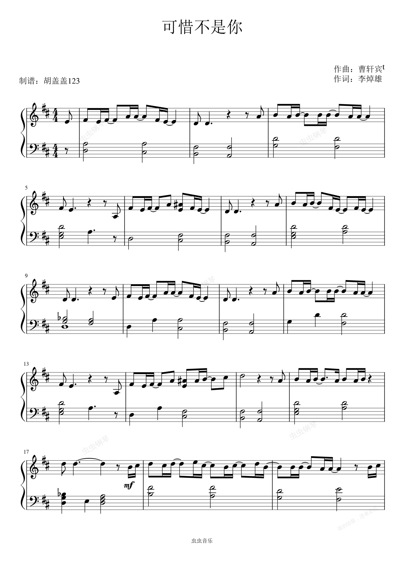 钢琴谱:可惜不是你