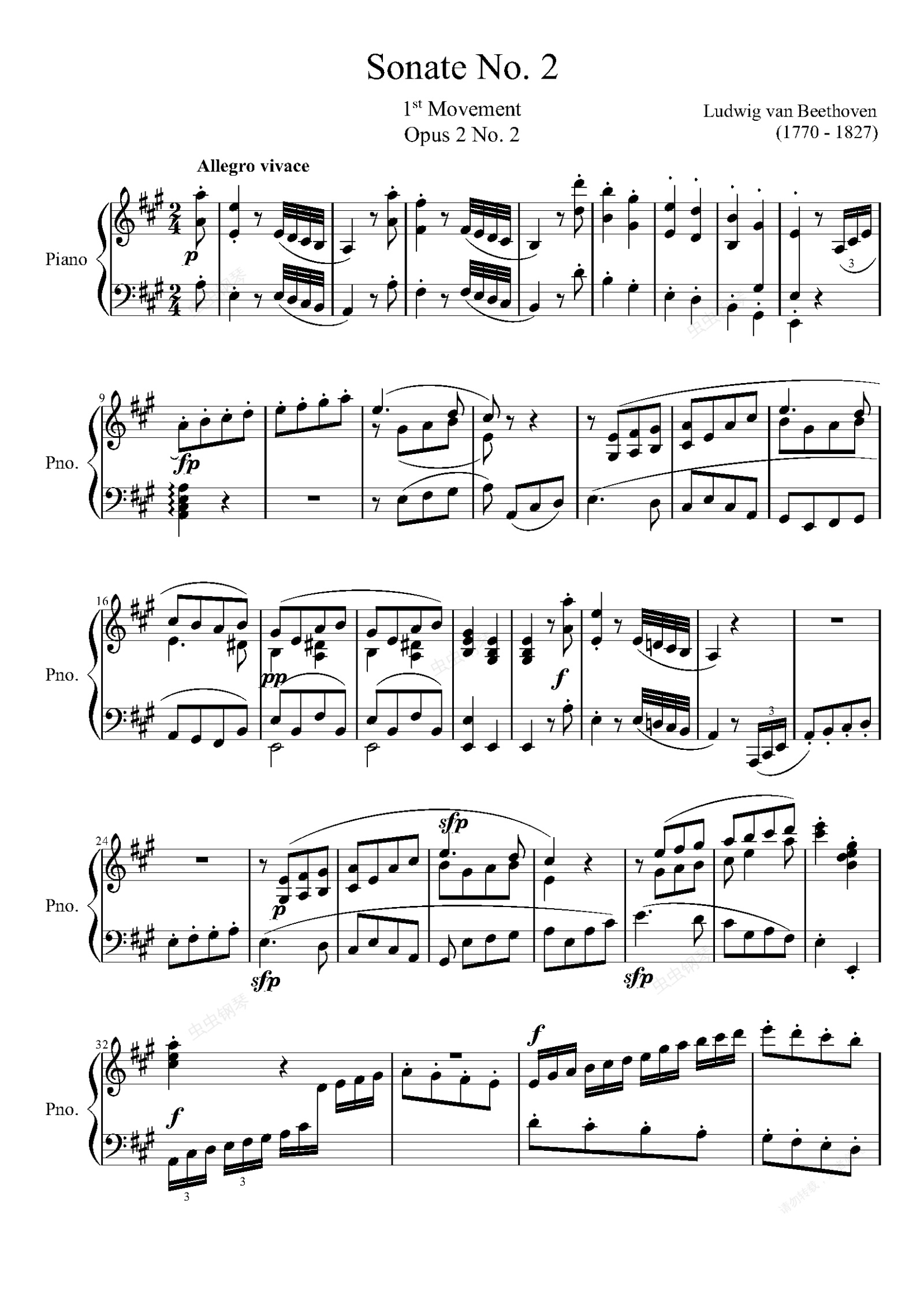 钢琴谱:贝多芬第二钢琴奏鸣曲(第一乐章)——Op.2-No.2