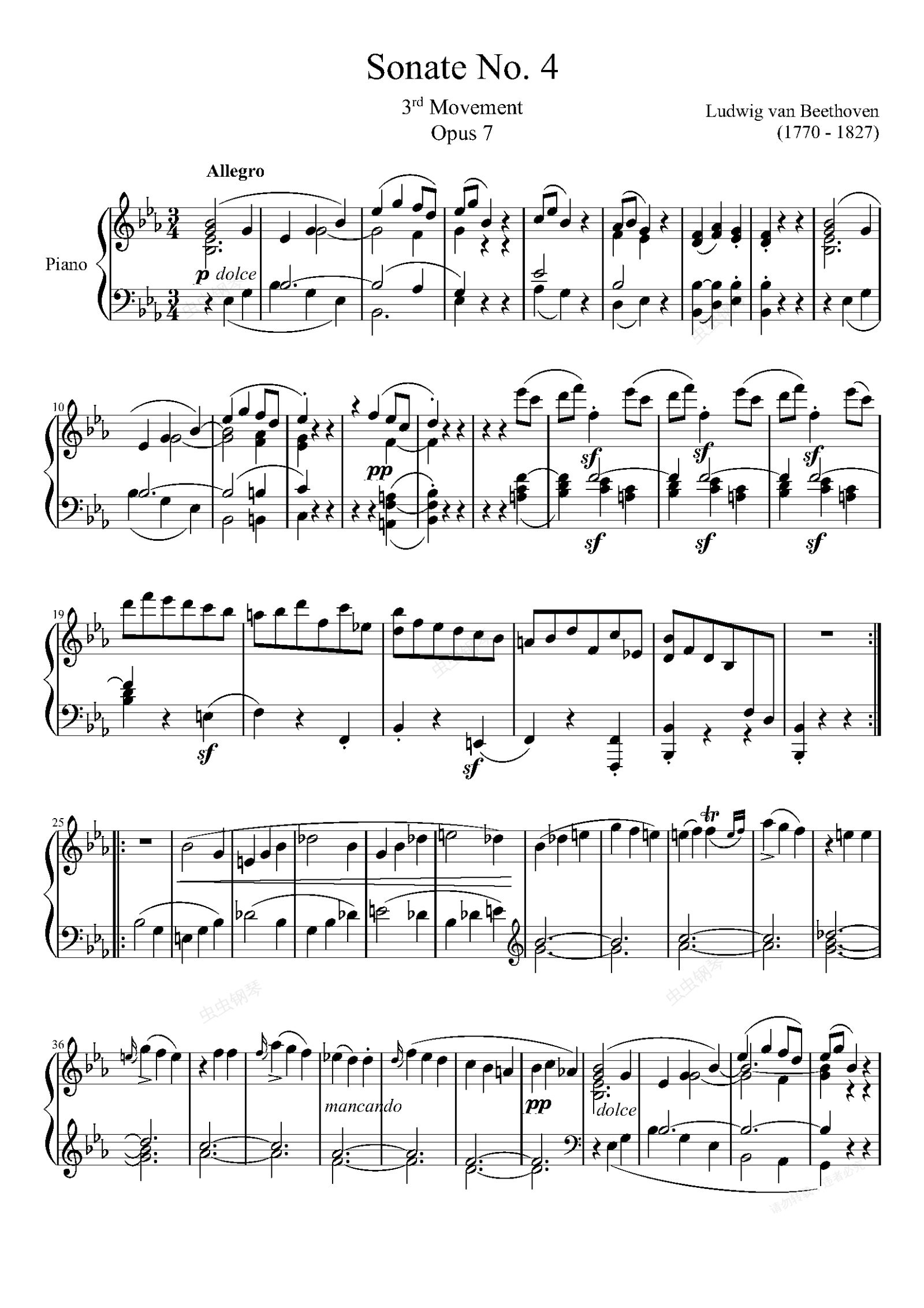 钢琴谱:贝多芬第四钢琴奏鸣曲(第三乐章)——Op.7