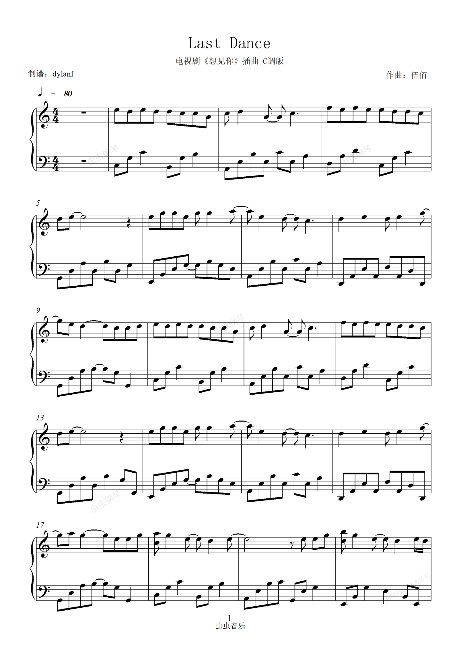 钢琴谱:Last Dance简易C调版 dylanf编配