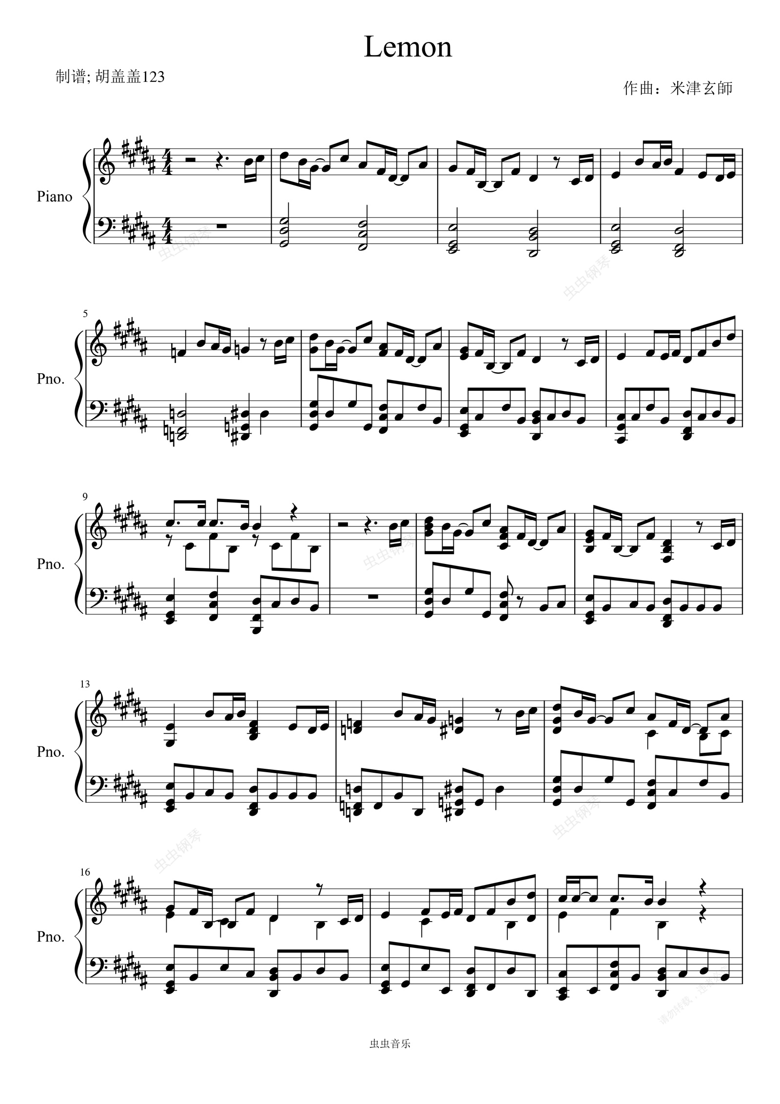 钢琴谱:Lemon