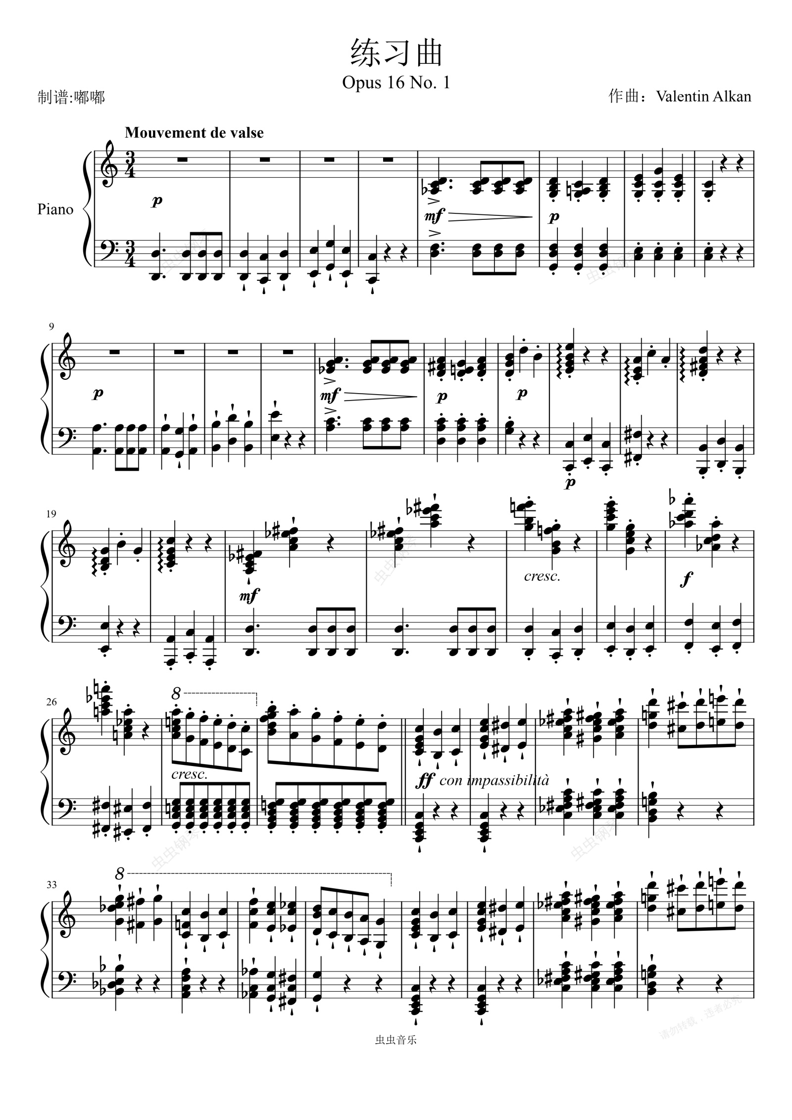 钢琴谱:练习曲(阿尔坎)——Op.16-No.1