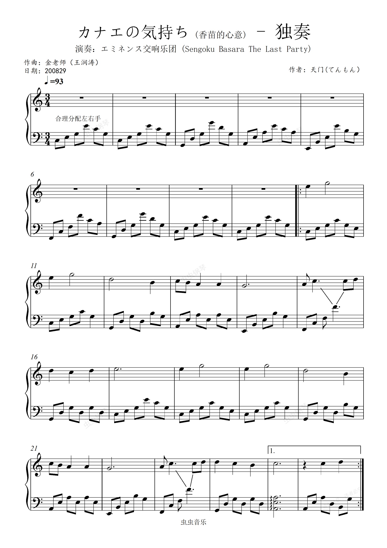 钢琴谱:カナエの気持ち (香苗的心意)-金老师独奏