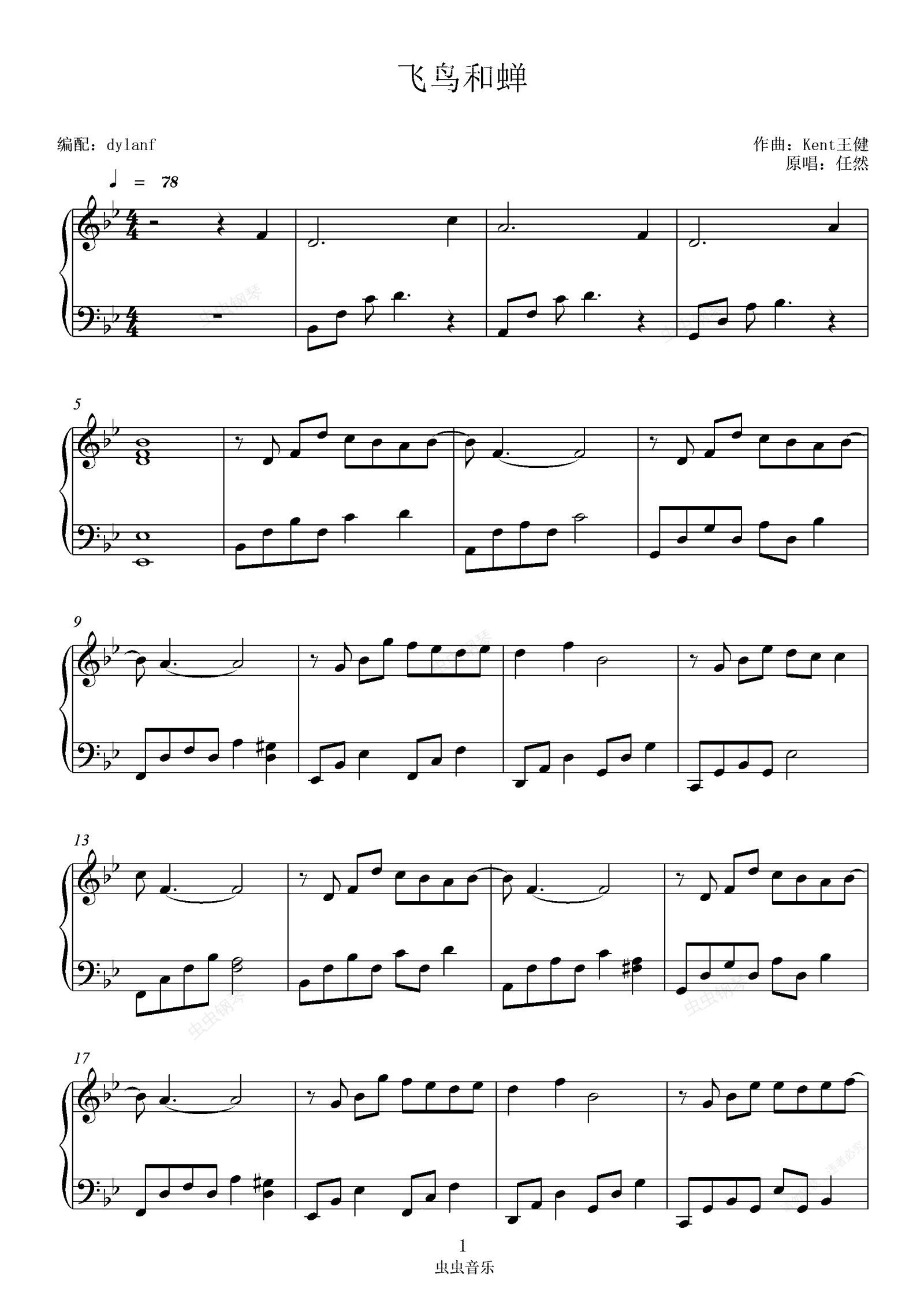 钢琴谱:飞鸟和蝉(钢琴版)好听好弹