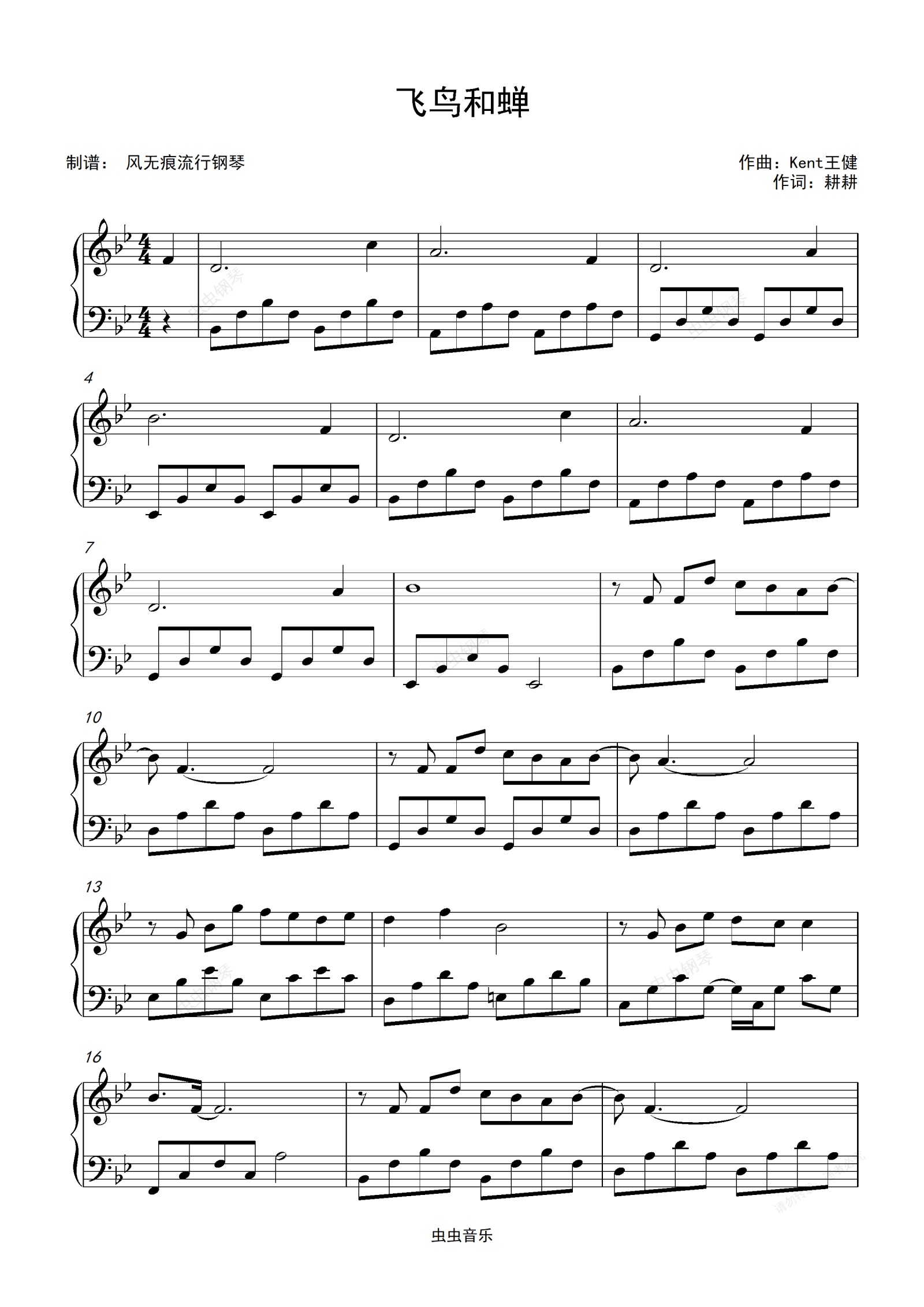 钢琴谱:飞鸟和蝉-任然〖简易动听〗