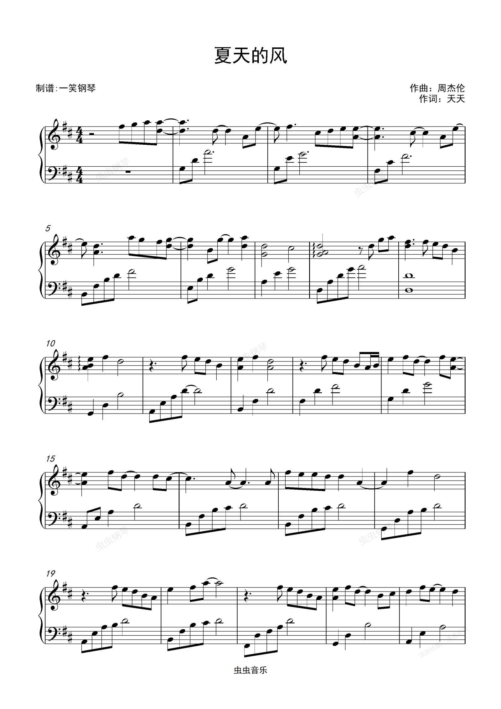 钢琴谱:夏天的风-温岚 【超级好听版】