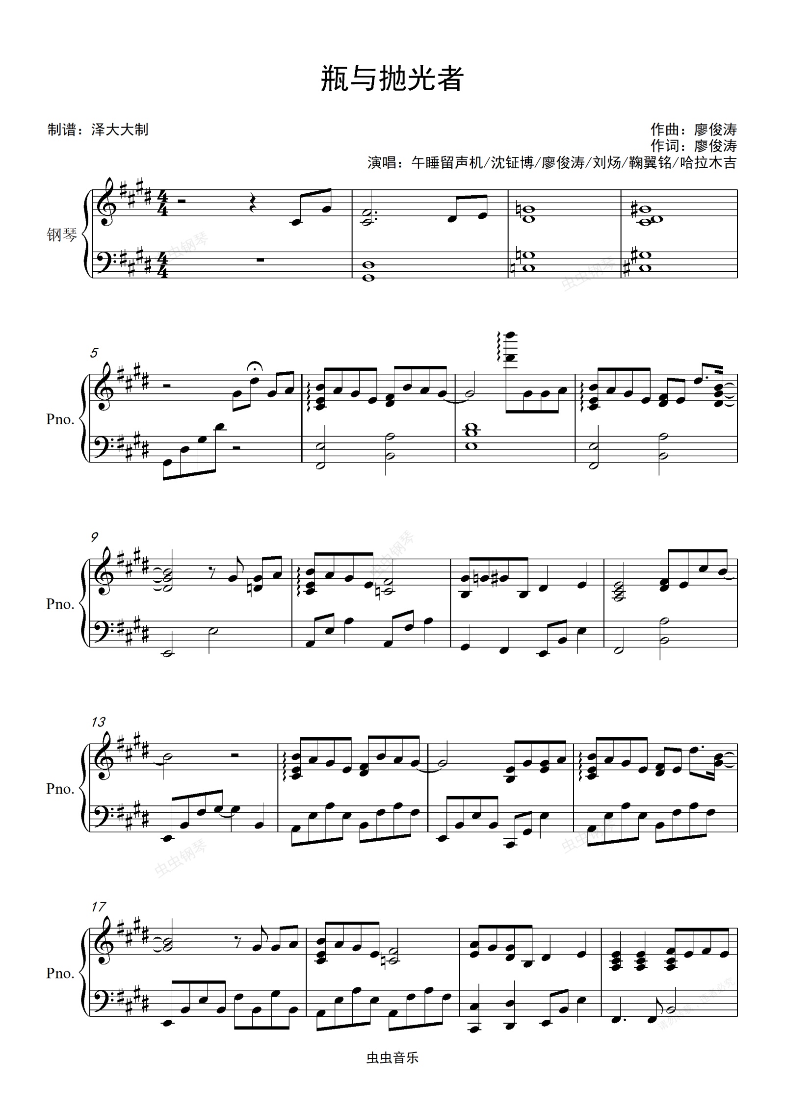 钢琴谱:瓶与抛光者【完美独奏版】【明日之子】