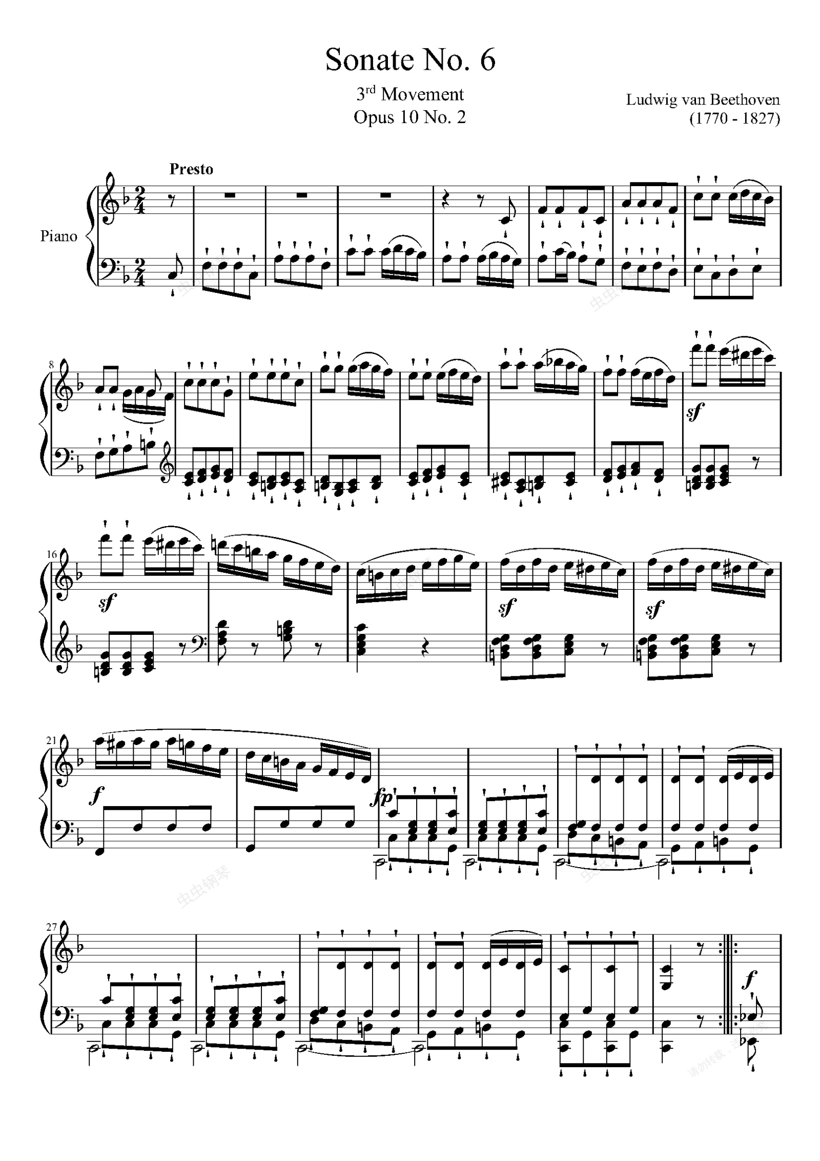 钢琴谱:贝多芬第六钢琴奏鸣曲(第三乐章)——Op.10-No.2