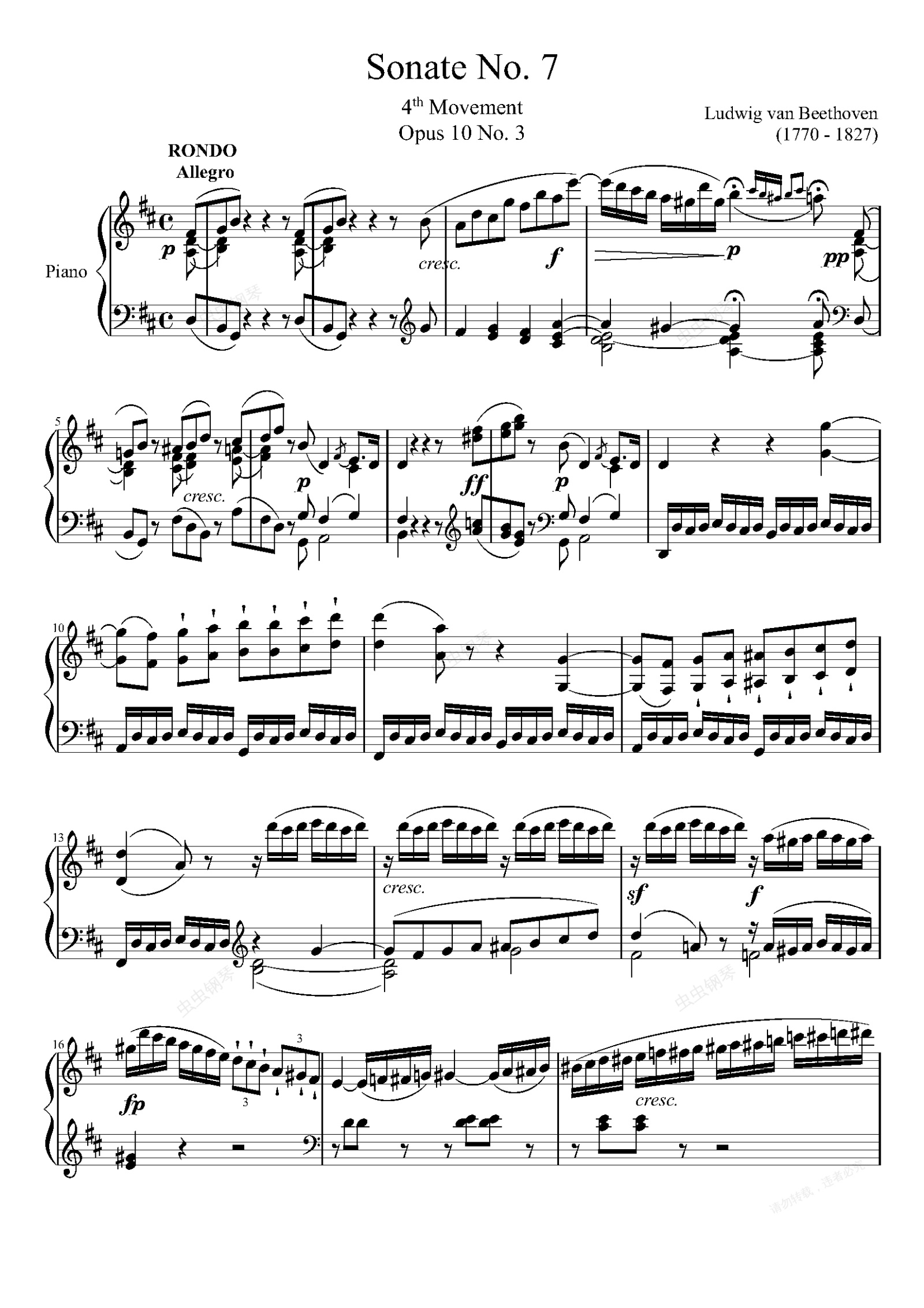 钢琴谱:贝多芬第七钢琴奏鸣曲(第四乐章)——Op.10-No.3