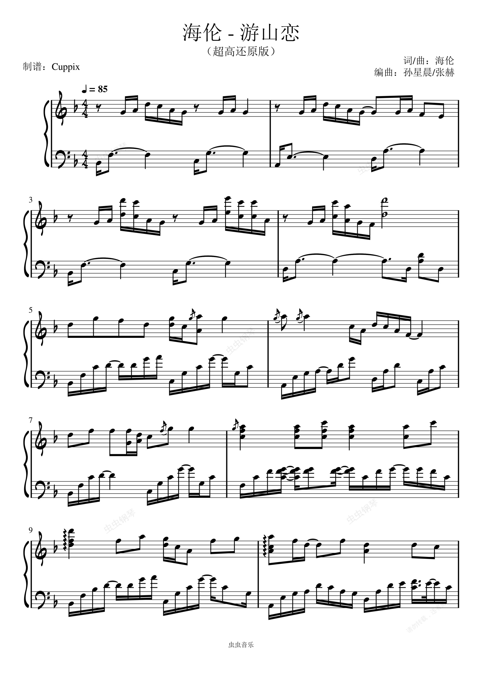 钢琴谱:海伦《游山恋》(超高还原独奏版 Cuppix改编)
