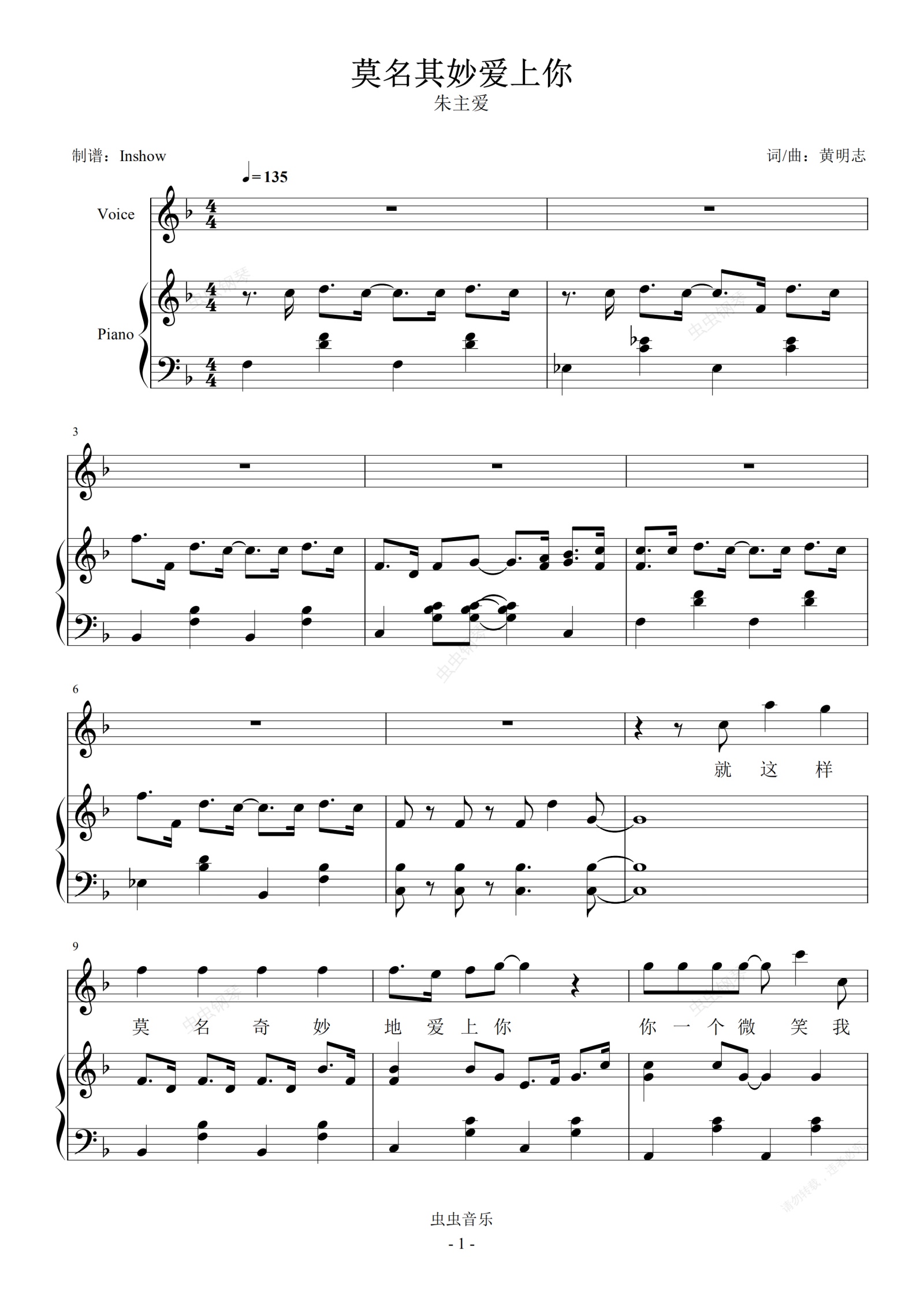 钢琴谱:莫名其妙爱上你【F调伴奏谱】