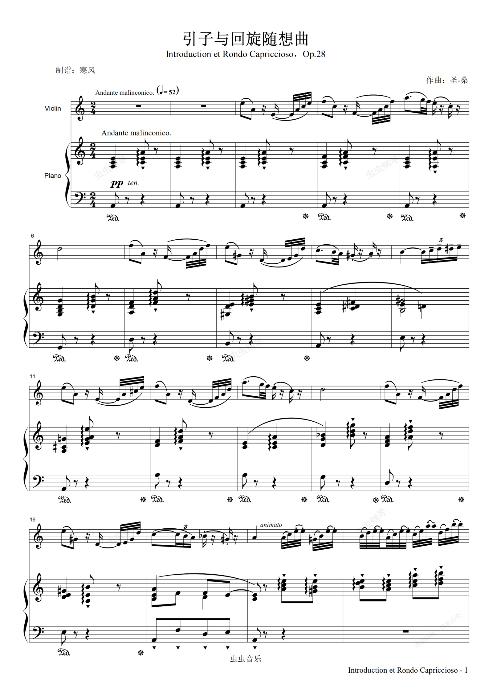 钢琴谱:圣•桑-引子与回旋随想曲(小提琴/钢琴)