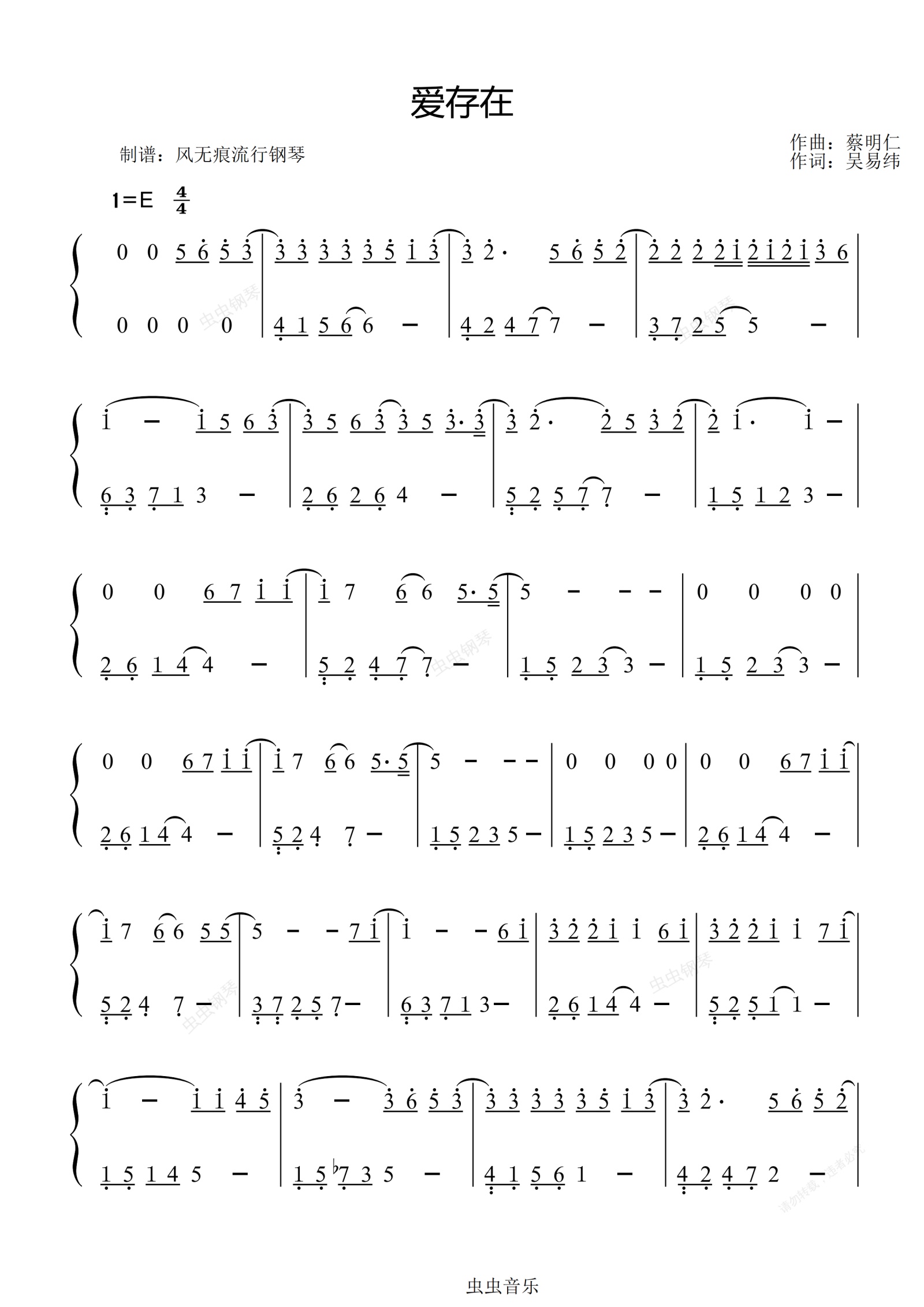 钢琴谱:爱存在-魏奇奇〖数字简谱〗 简谱版