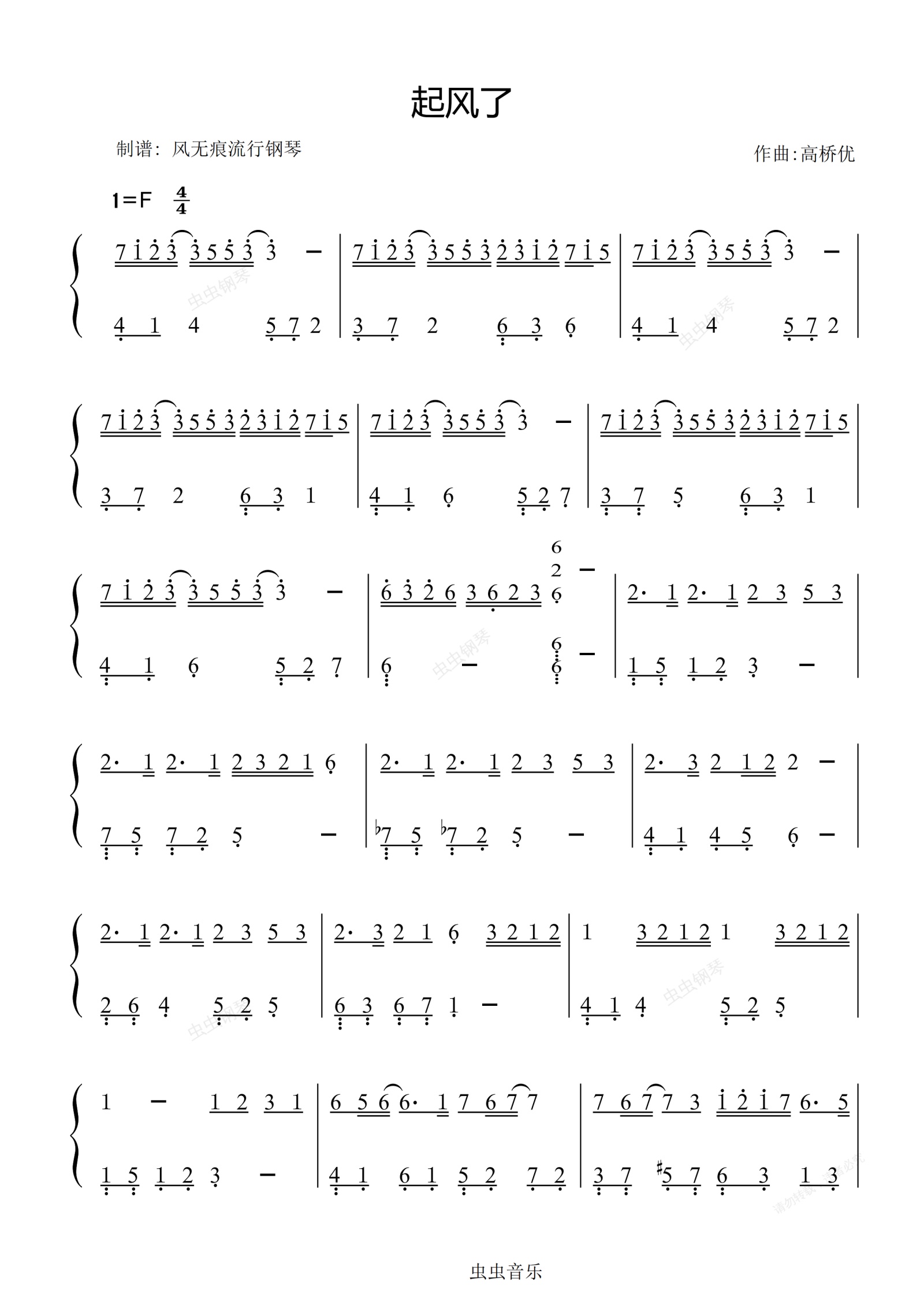 钢琴谱:起风了-高桥优〖数字简谱〗