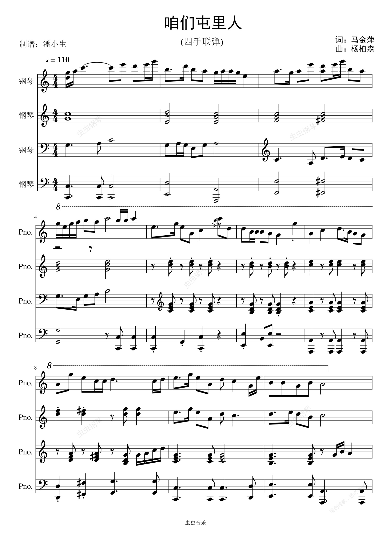 钢琴谱:咱们屯里的人 四手联弹 《乡村爱情》主题曲