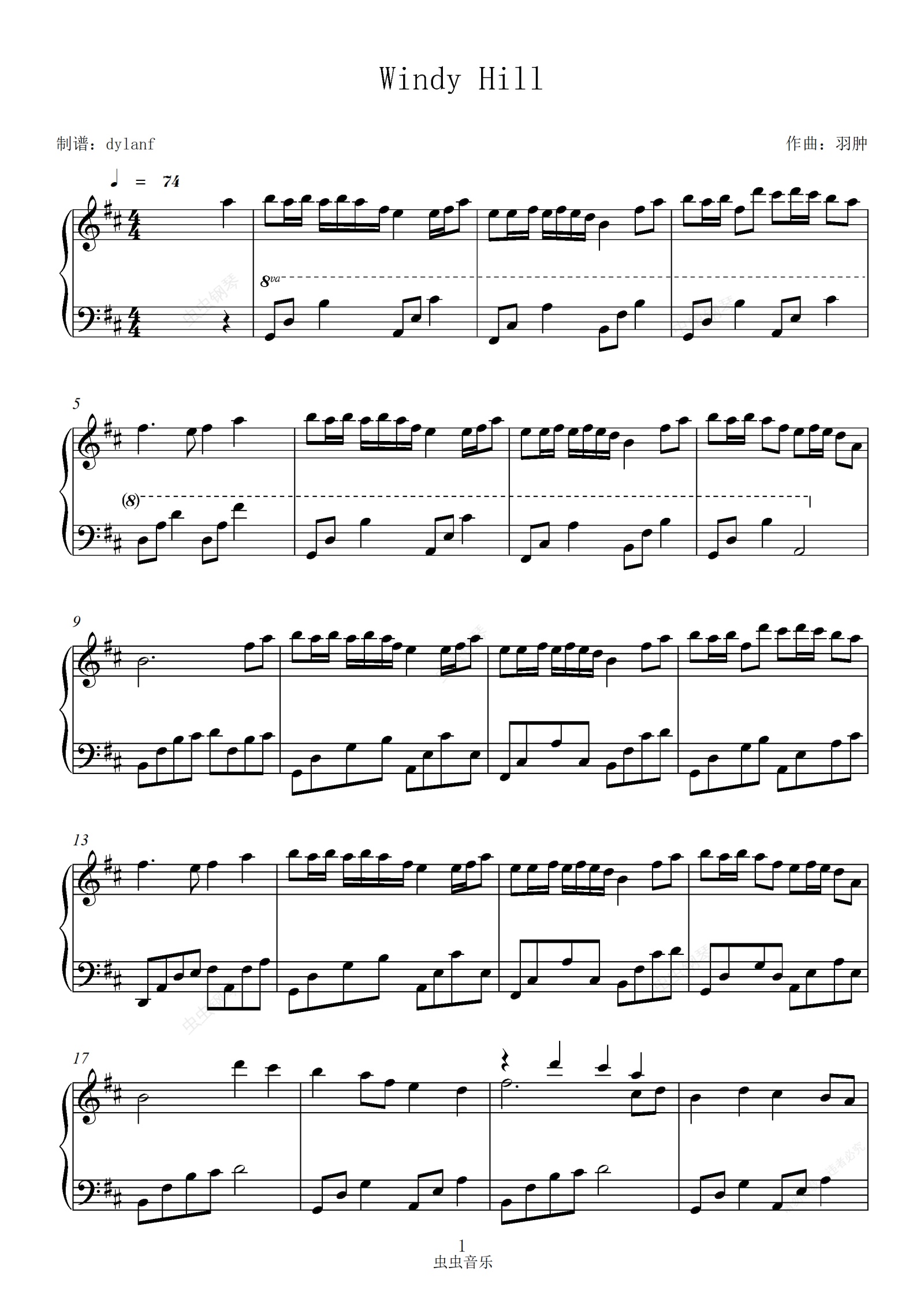 钢琴谱:Windy Hill 羽肿(dylanf编配)