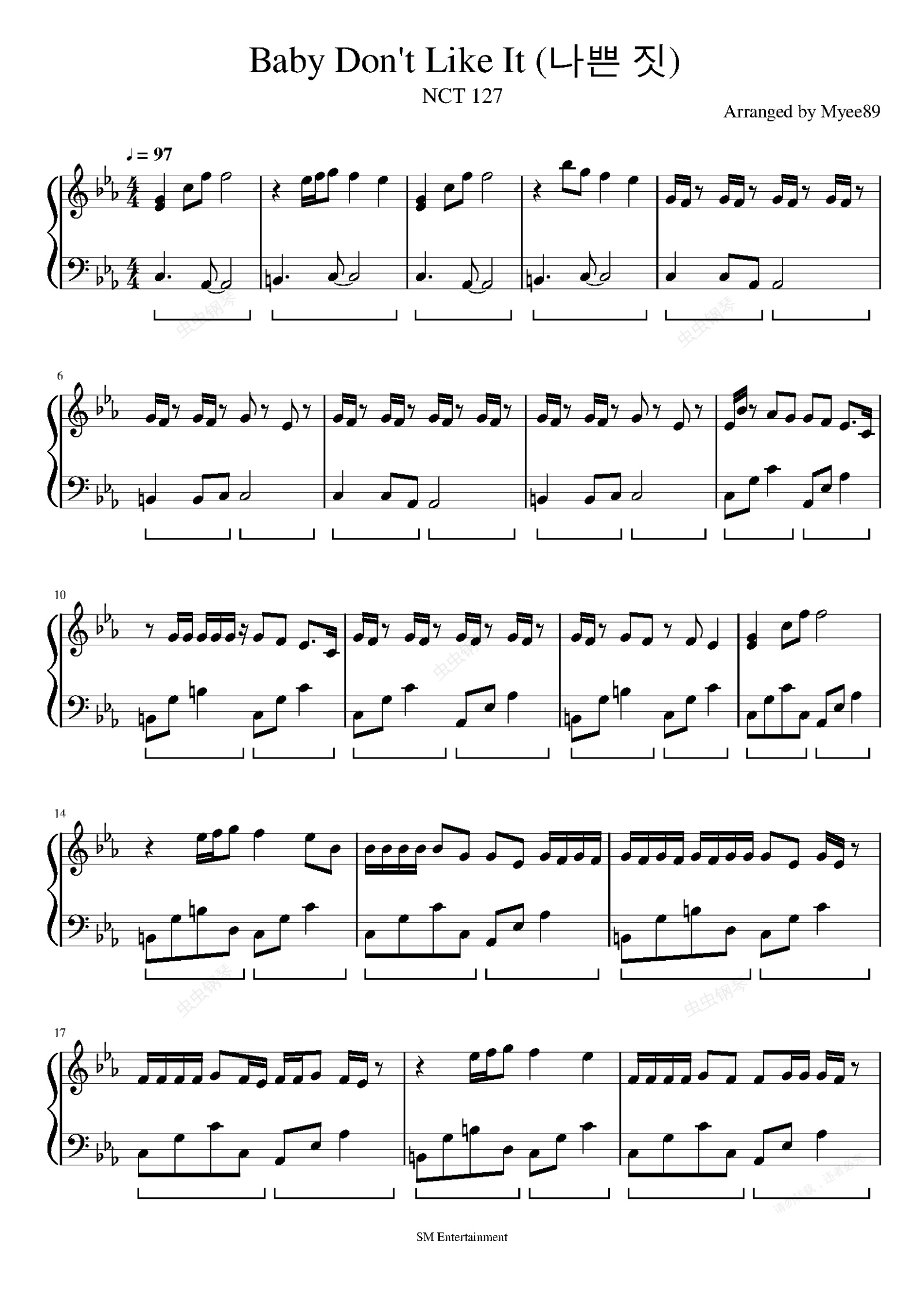 钢琴谱:NCT 127 - Baby Don't Like It 钢琴谱