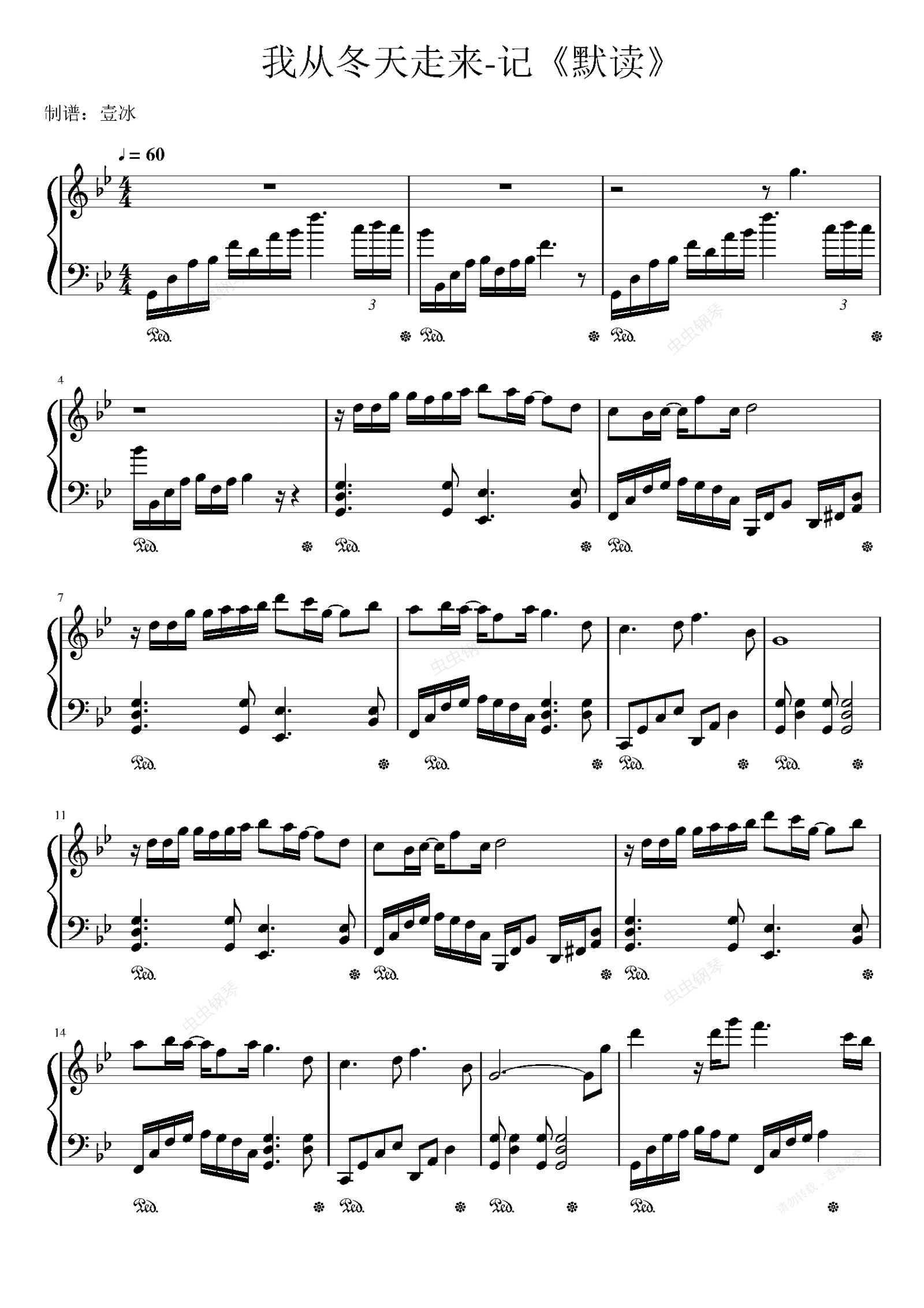 钢琴谱:我从冬天走来-记《默读》--壹冰版