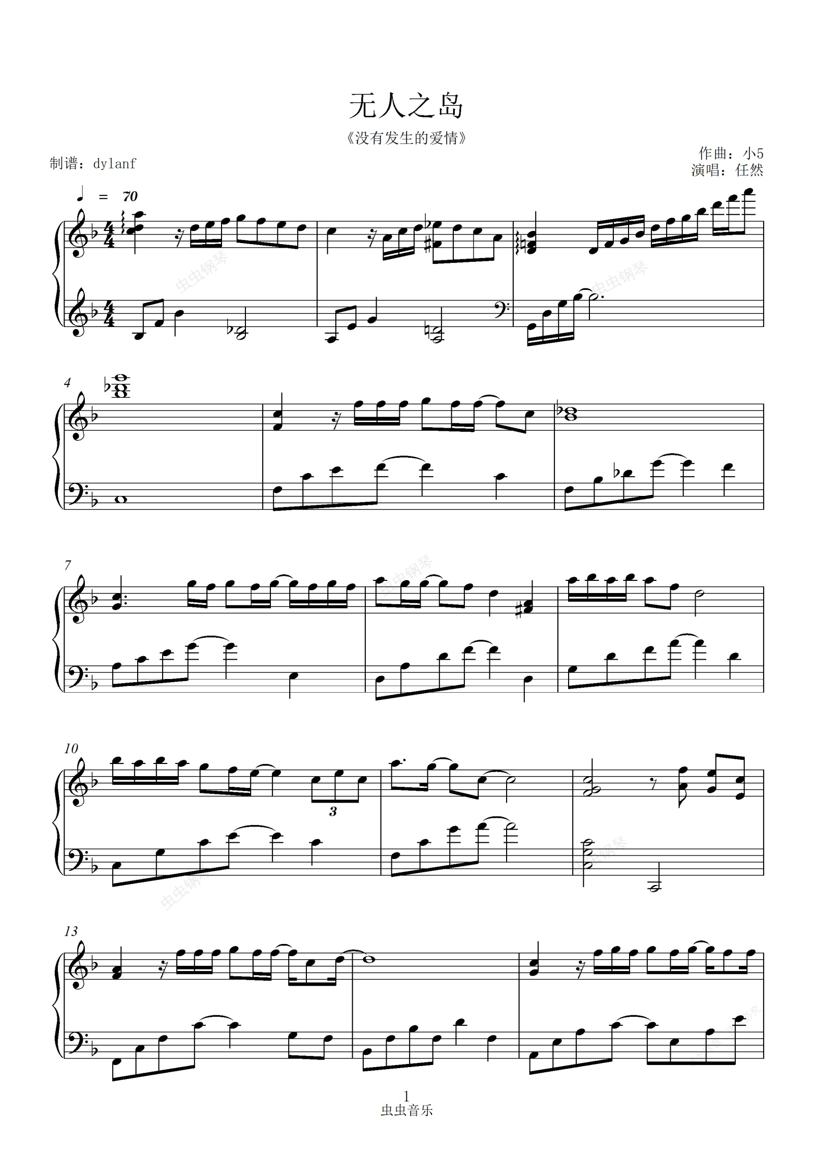 钢琴谱:无人之岛(钢琴版)好听好弹
