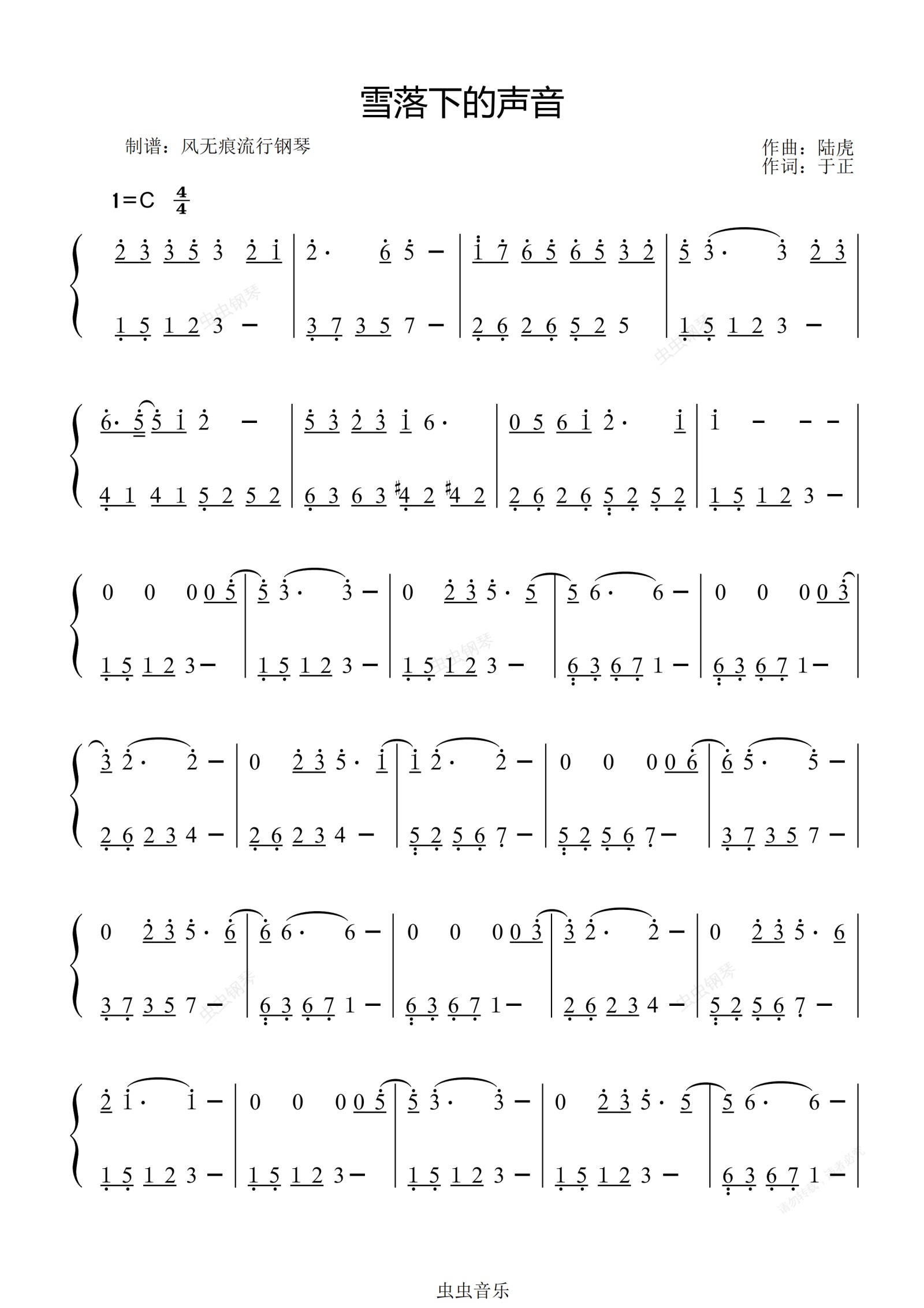 钢琴谱:雪落下的声音-陆虎〖数字简谱〗